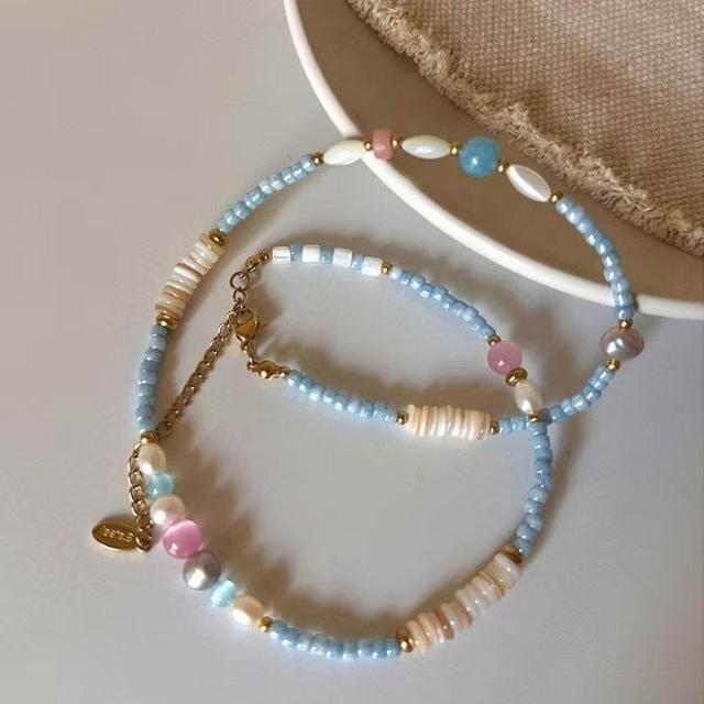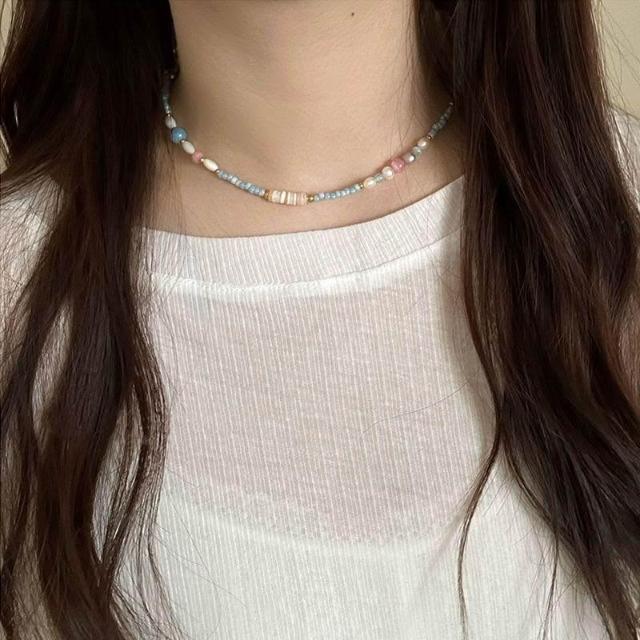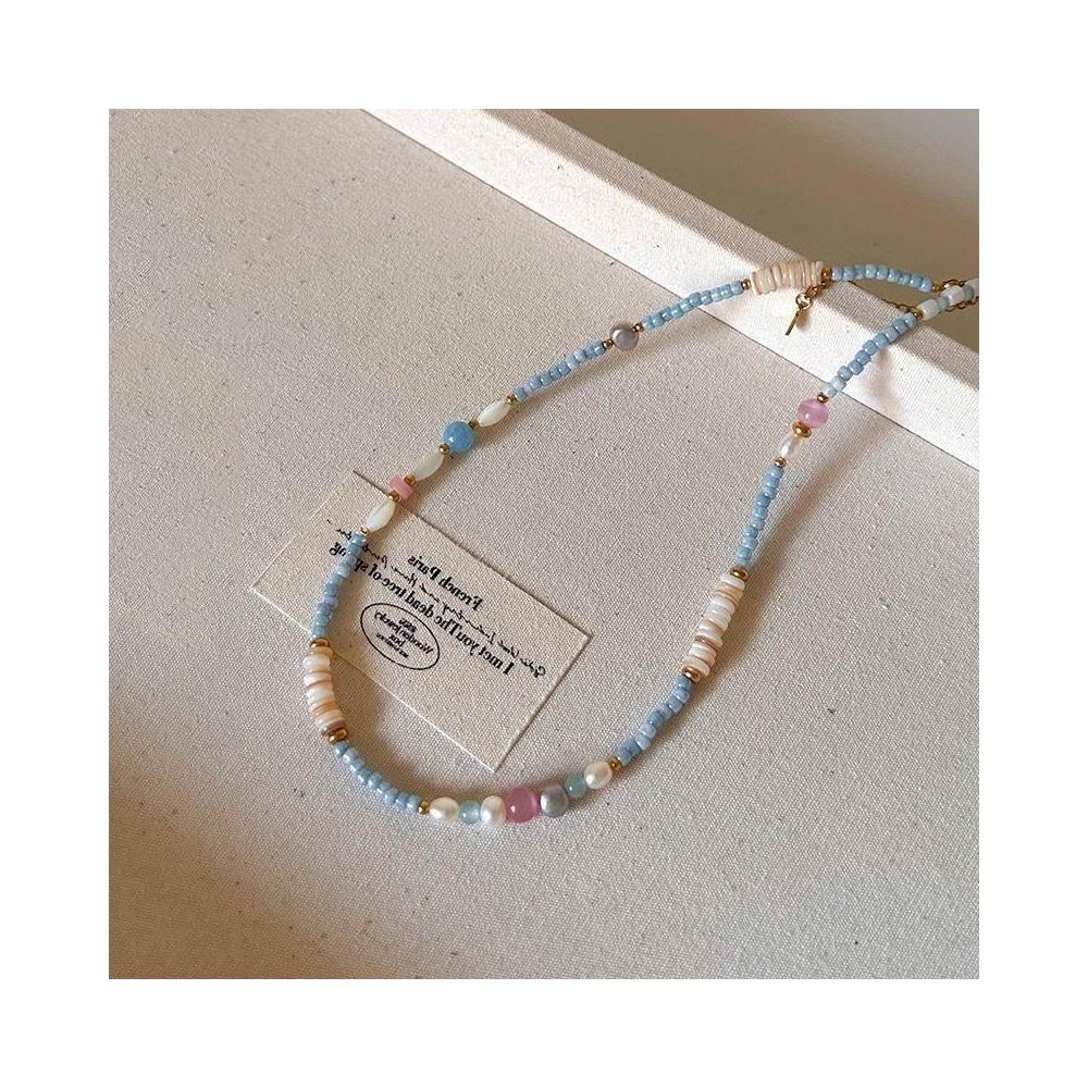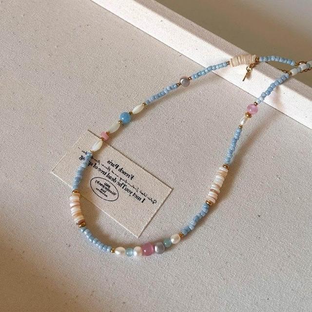 freezesuson「青藍冰水」夏季多巴胺彩色串珠項鍊女小清新輕奢甜美疊搭項鍊女