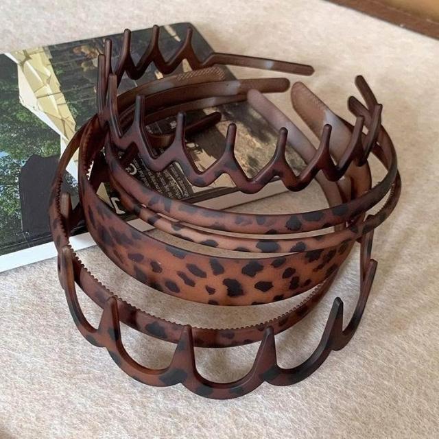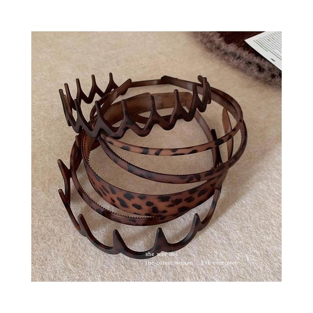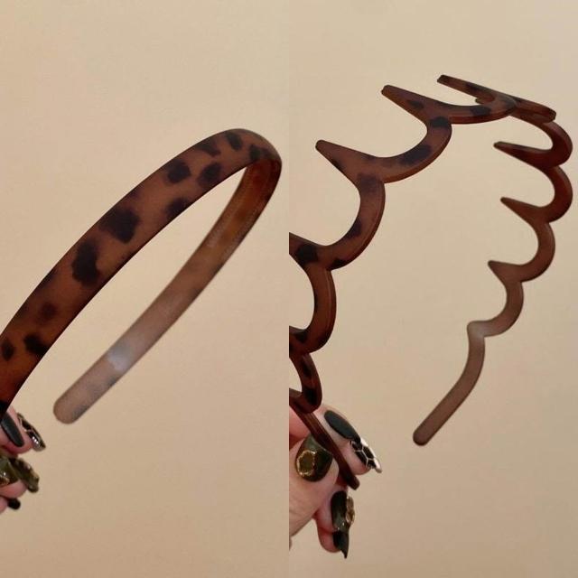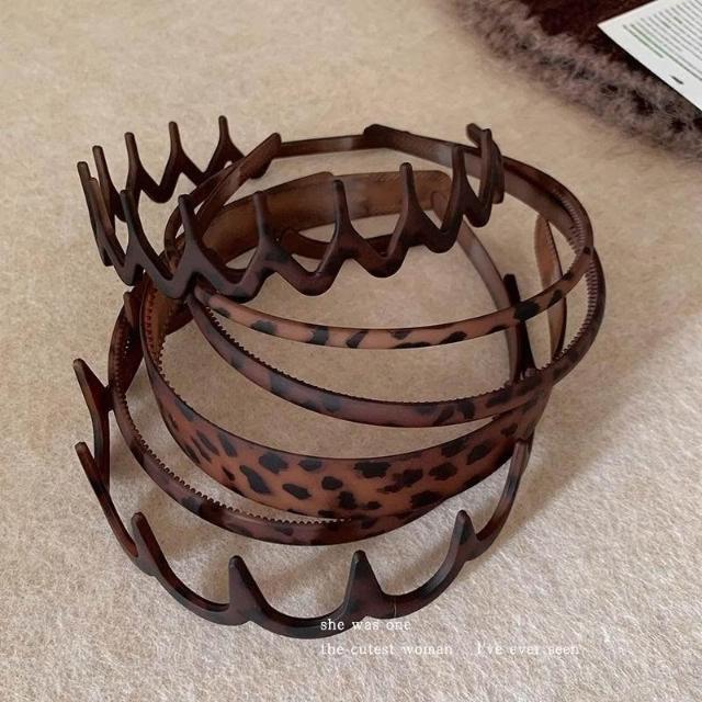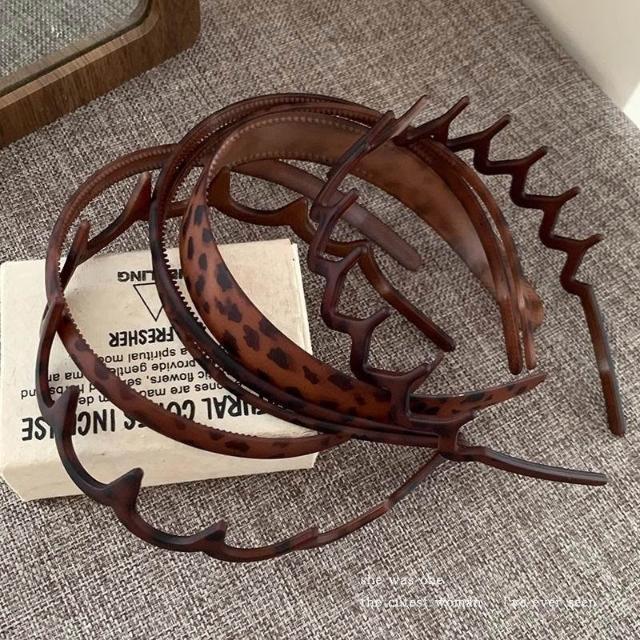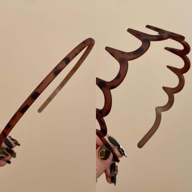 freezesuson韓系簡約磨砂豹紋髮箍女高級感波浪頭箍高顱頂洗臉髮卡帶齒髮飾品