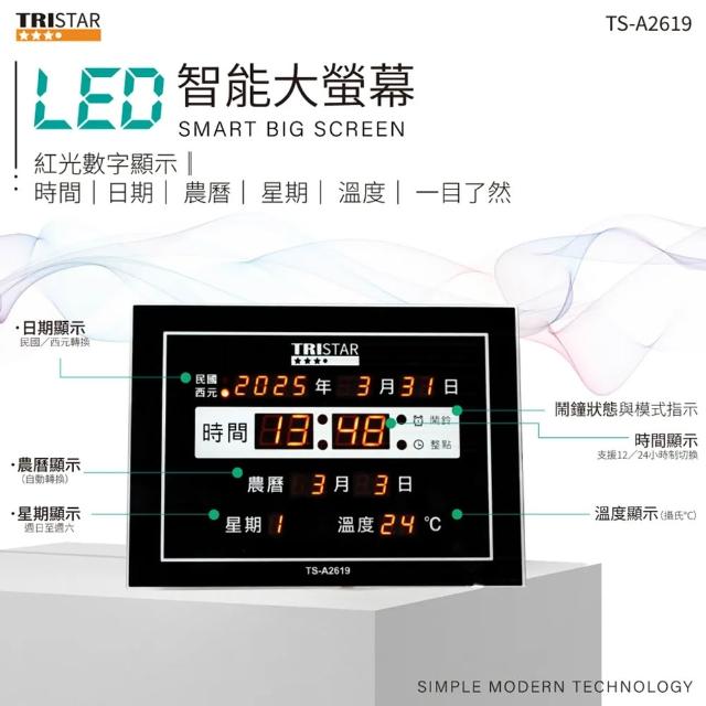 TRISTARLED插電式萬年曆 數位電子鐘 鬧鐘 時鐘 桌鐘