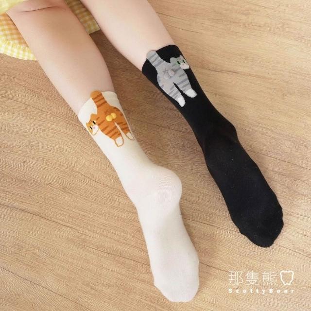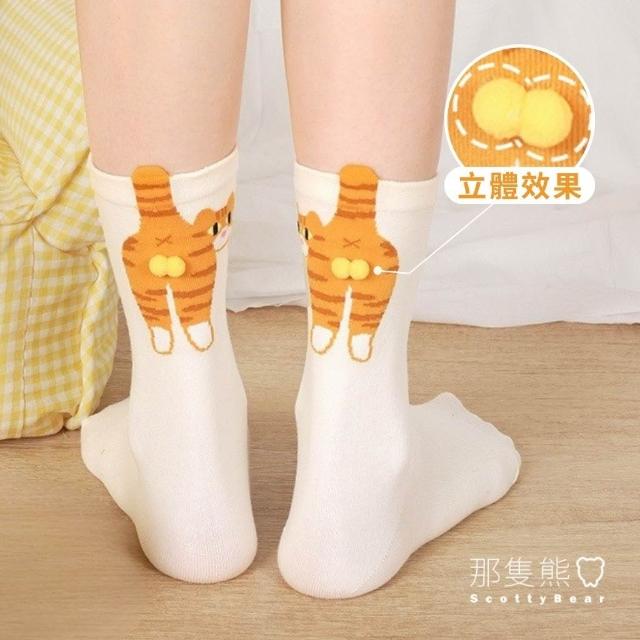 ScottyBear™️那隻熊 可愛 貓咪 叮噹貓 球球 襪子 虎斑 質感 趣味 棉襪 中筒襪 女襪 小貓襪 ZD013