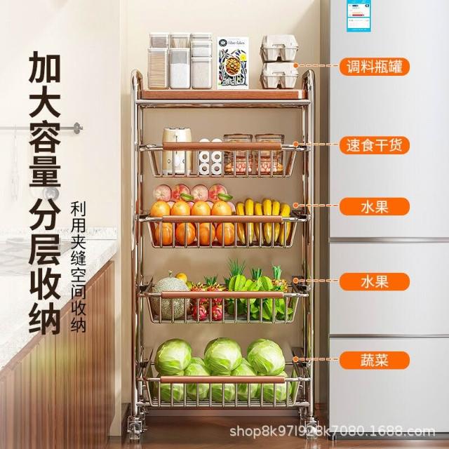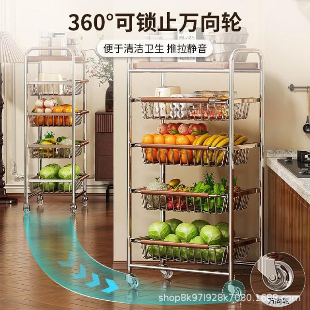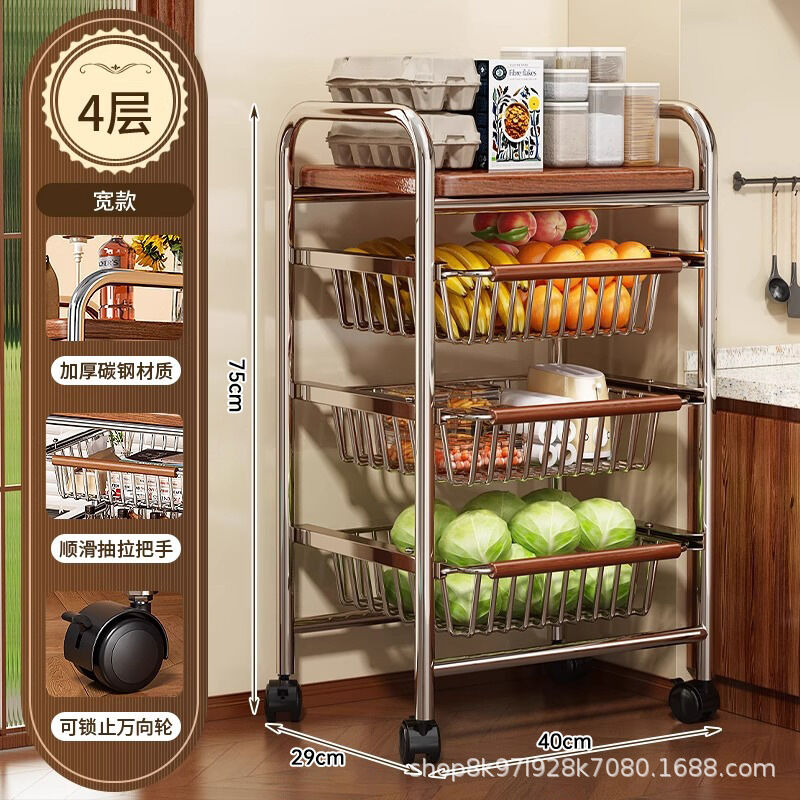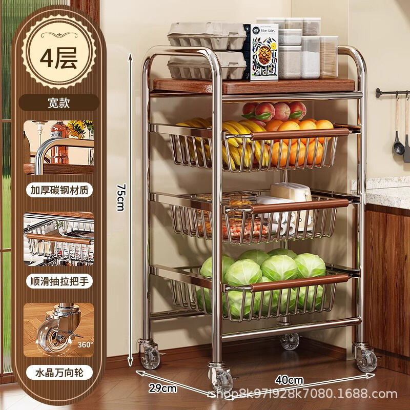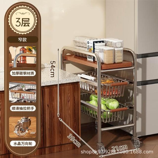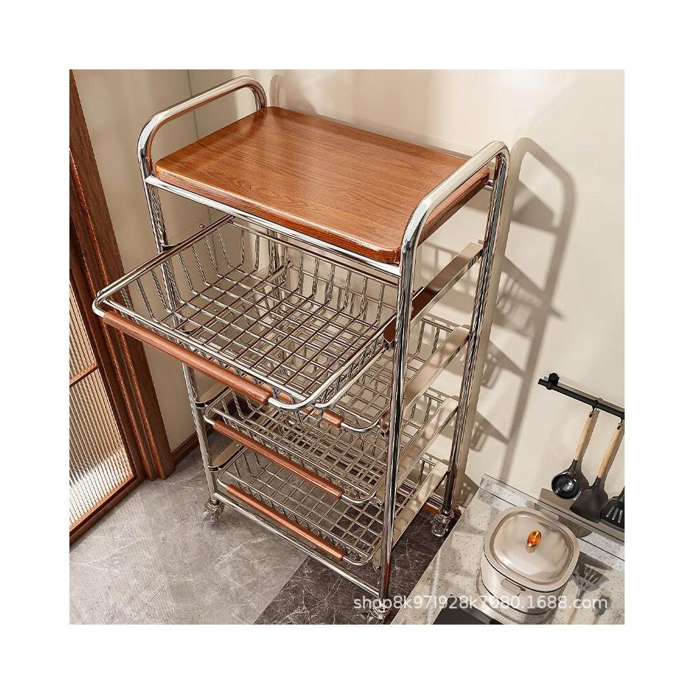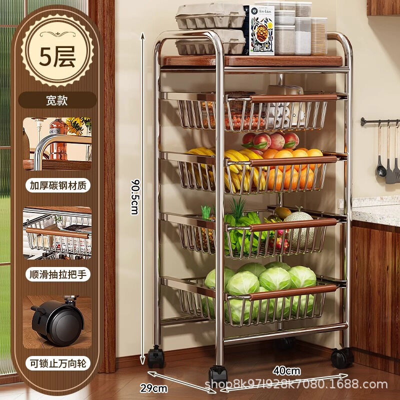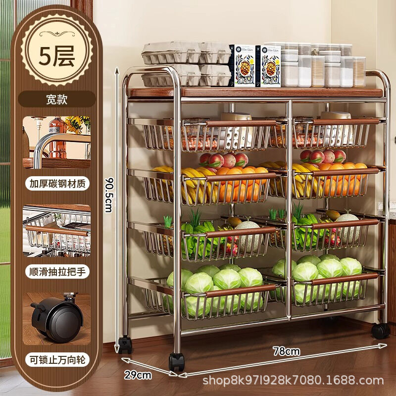 免稅 中古風廚房小推車置物架多功能果蔬菜籃零食多層抽拉式可移動收納