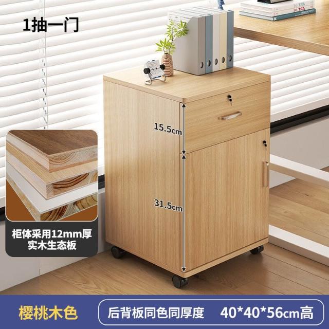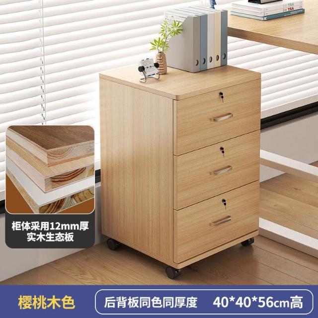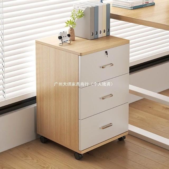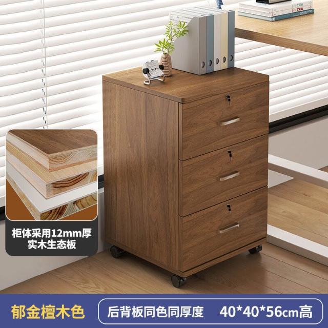 免税 實木辦公室辦公帶鎖資料文件櫃桌下收納矮櫃家用可移動帶滑輪儲物
