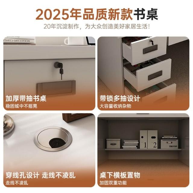五域家俱 電腦桌 臺式現代書桌家用臥室學習桌簡約工作臺帶抽屜辦公桌子