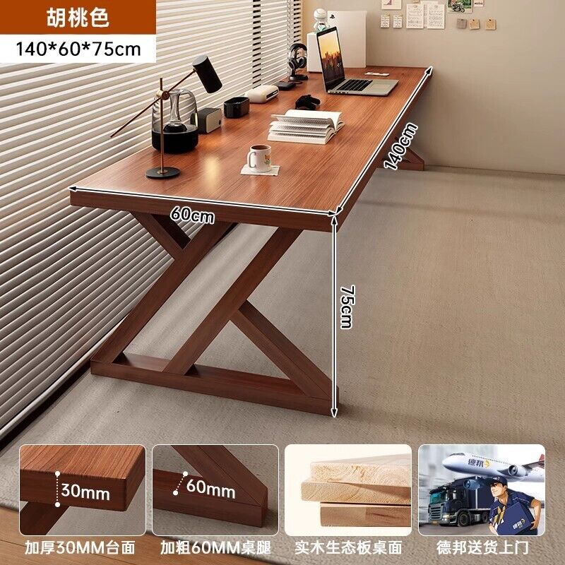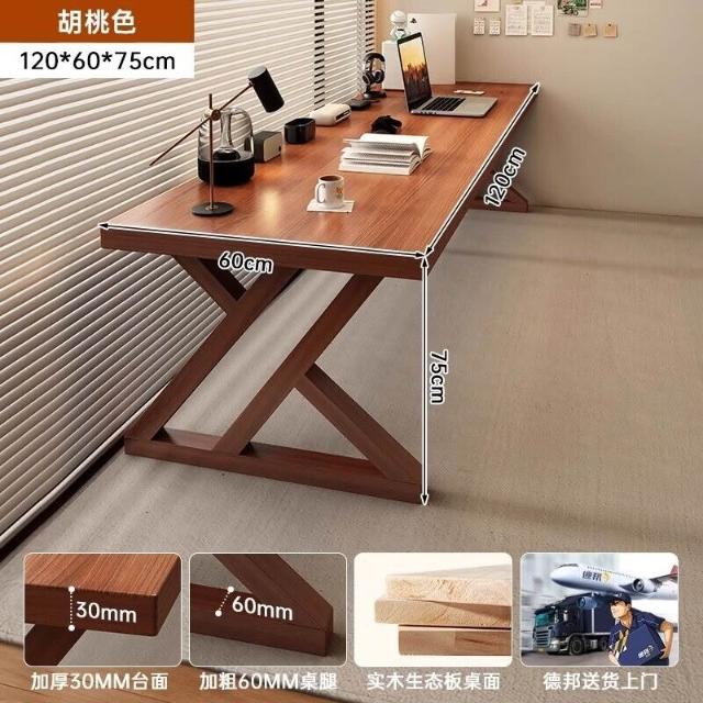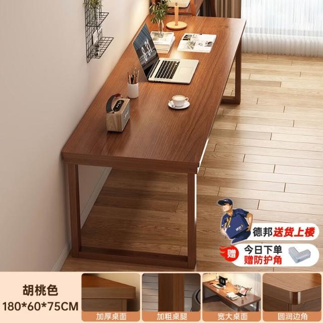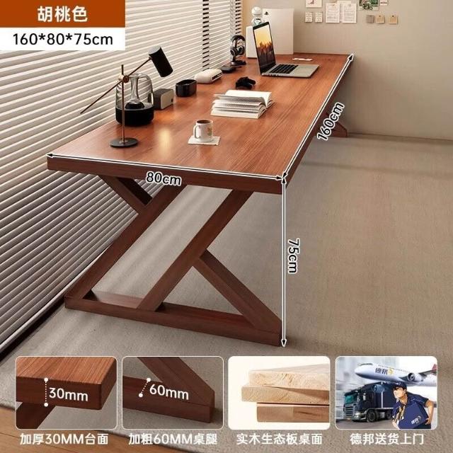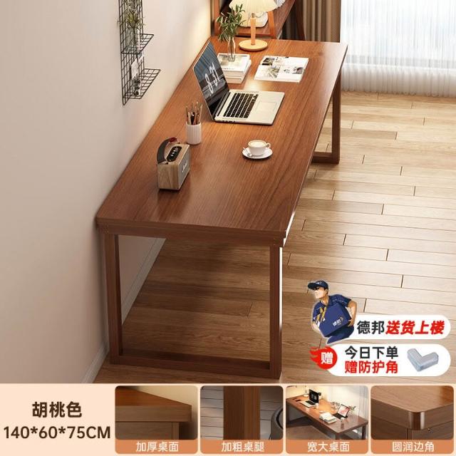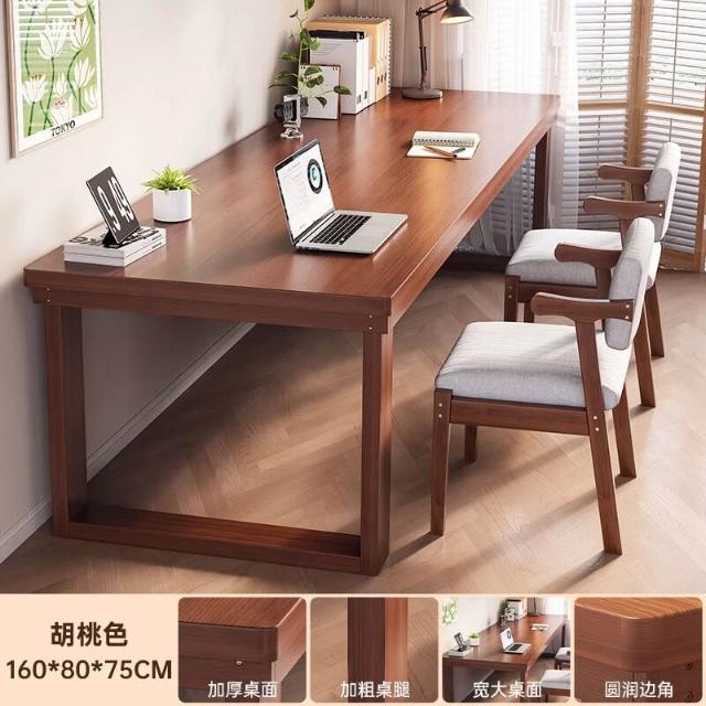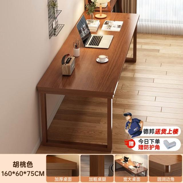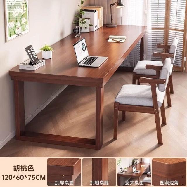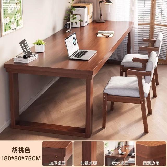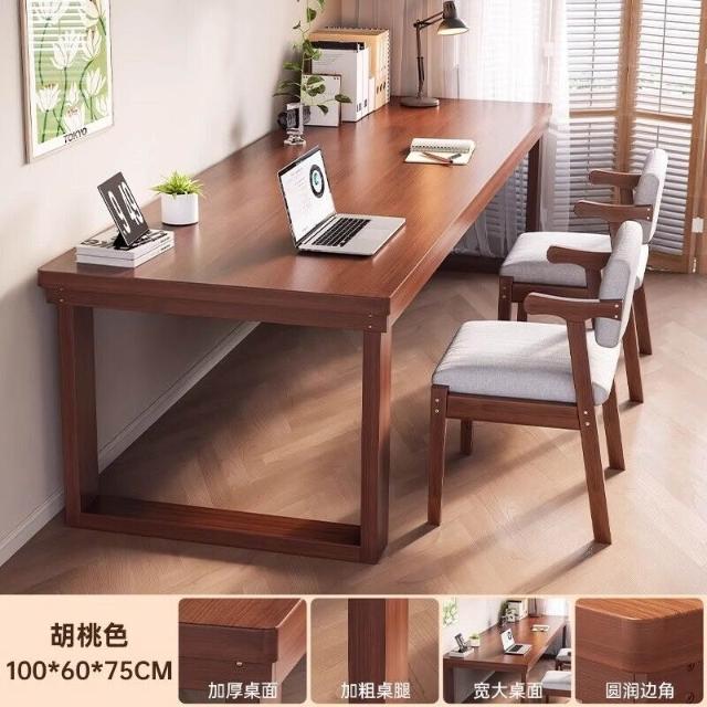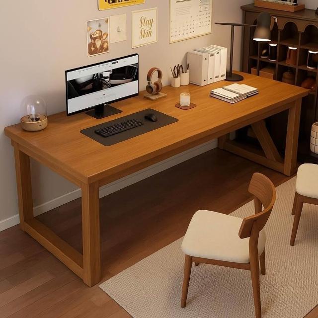 五域家俱 實木腿電腦桌 臥室家用辦公桌長條工作臺大板電競桌子臺式雙人書桌