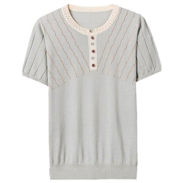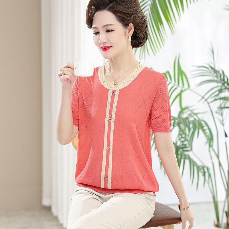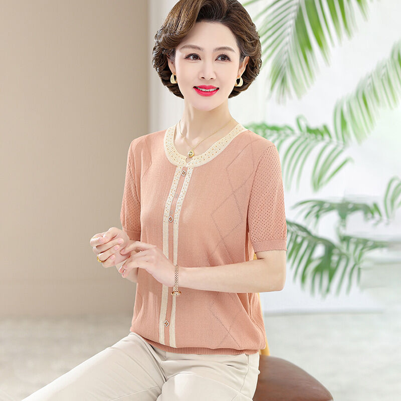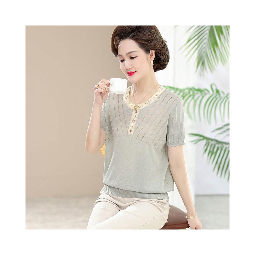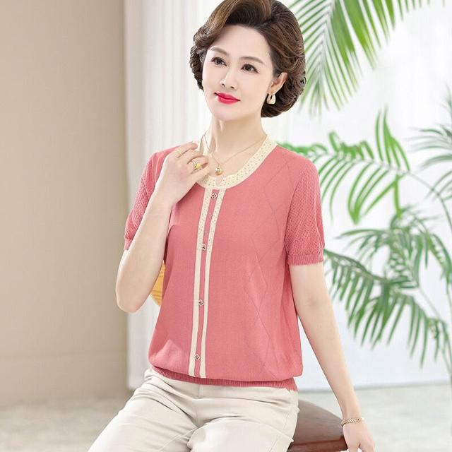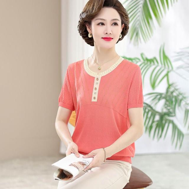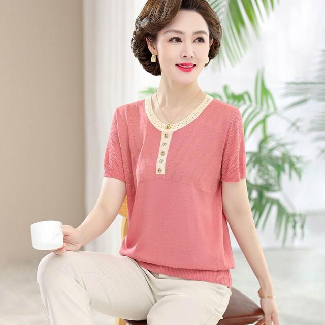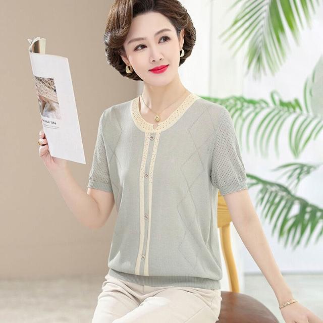 新品上架 媽媽夏裝 圓領洋氣冰絲短袖50歲中年女薄款上衣中老年針織T恤小衫