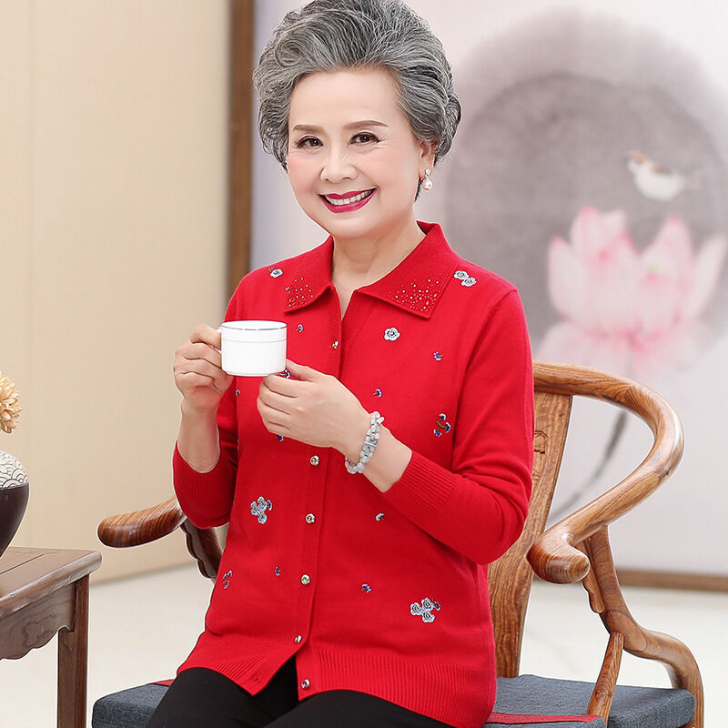 新品上架 中老年人春裝 女媽媽薄款外套老人春秋季上衣服奶奶裝太太針織開衫