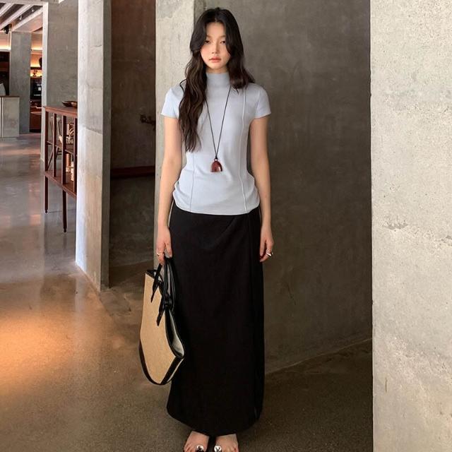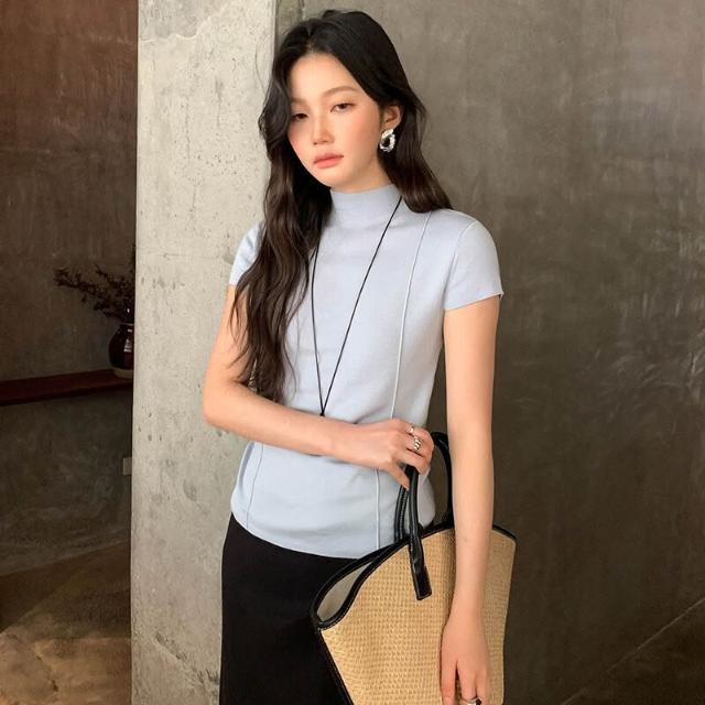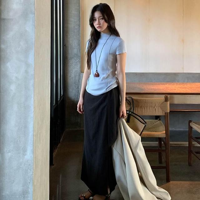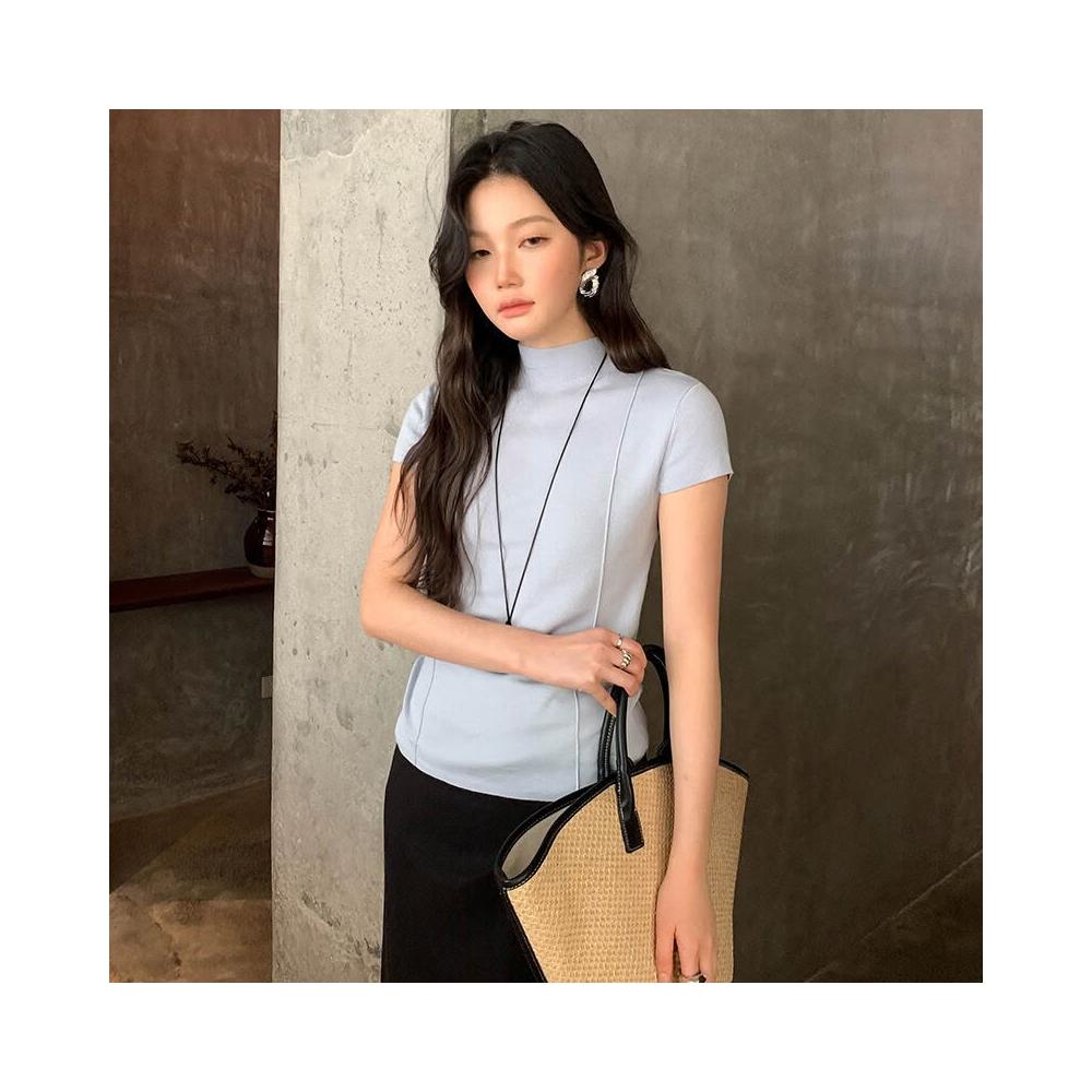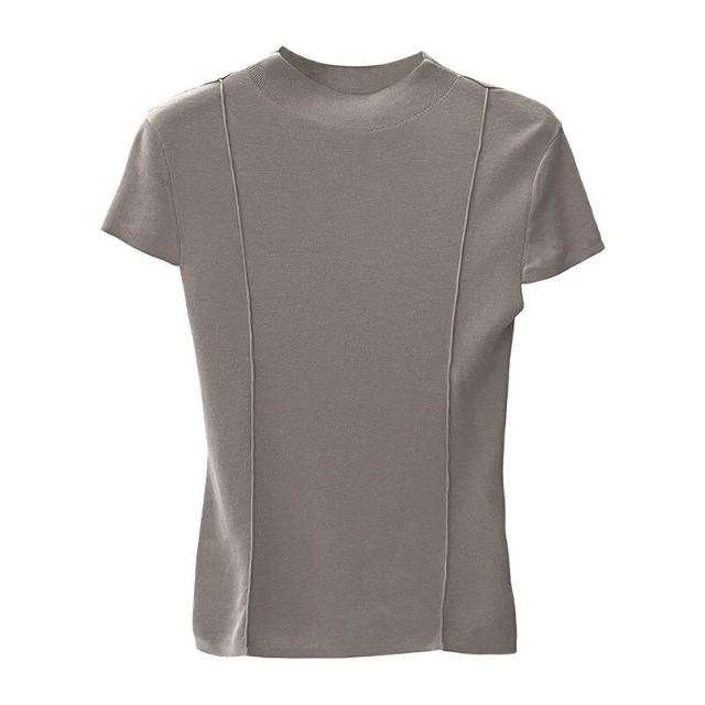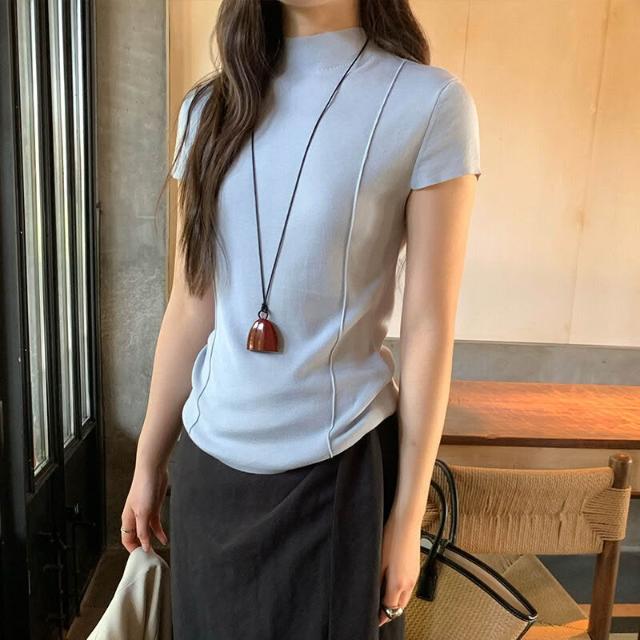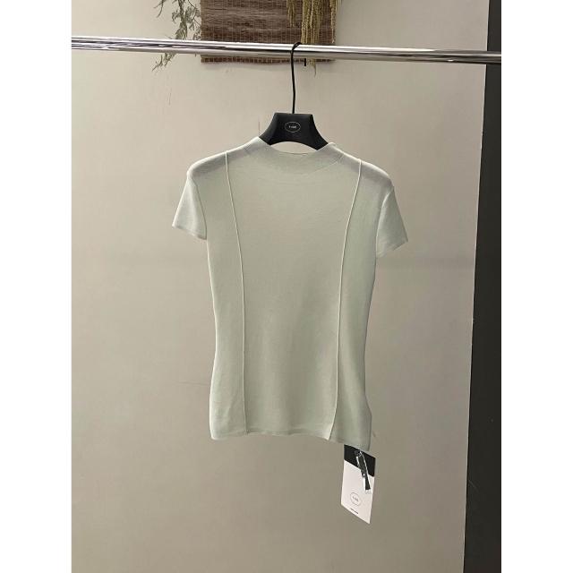 新品上架 2025春夏新款極簡桑蠶絲半高領針織短袖T恤女高級感