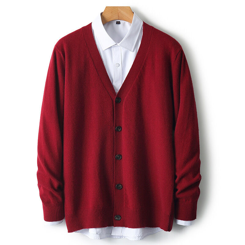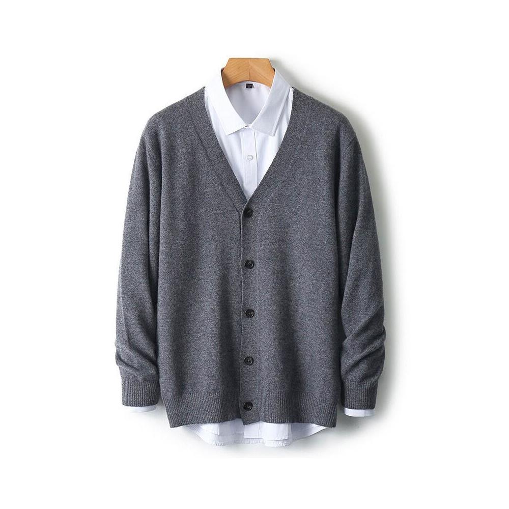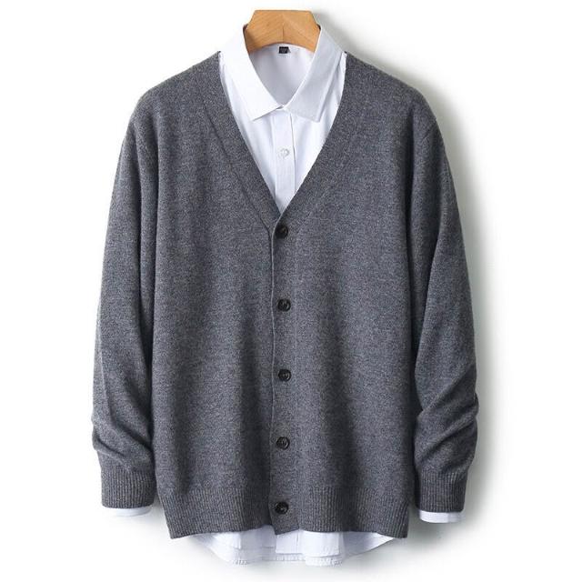 新品上架 2025年新款羊毛開衫男V領純色長袖毛衣寬松休閑百搭羊絨針織外套