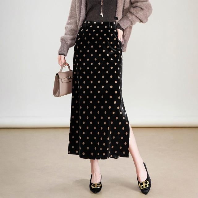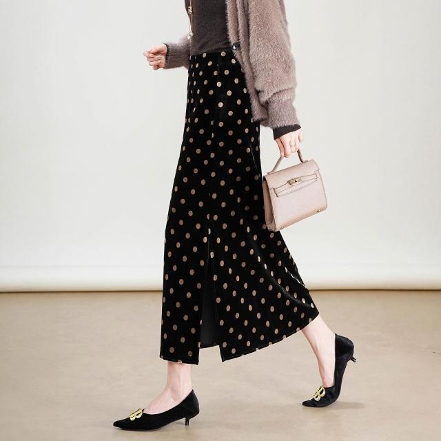 新品上架 秋冬季長裙高腰直筒裙女印花金絲絨半身裙覆古優雅中年女士裙子女