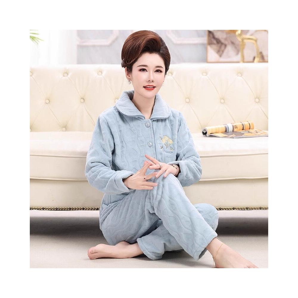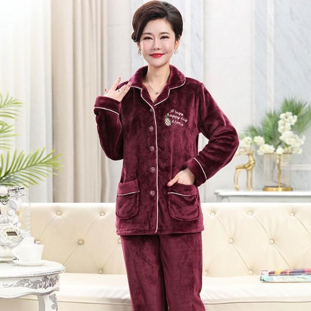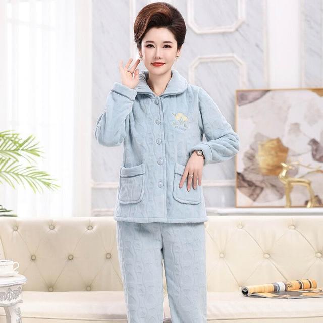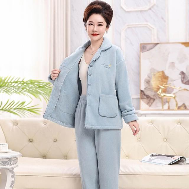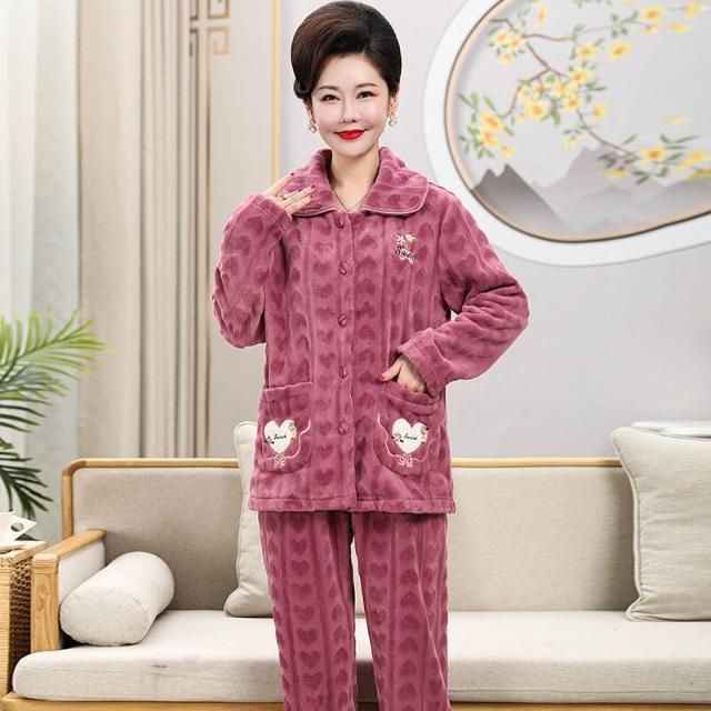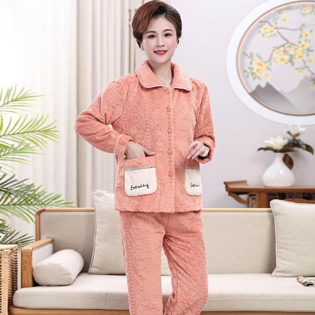 新品上架 媽媽睡衣冬季2025新款珊瑚絨女中老年人秋冬款加絨加厚家居服套裝