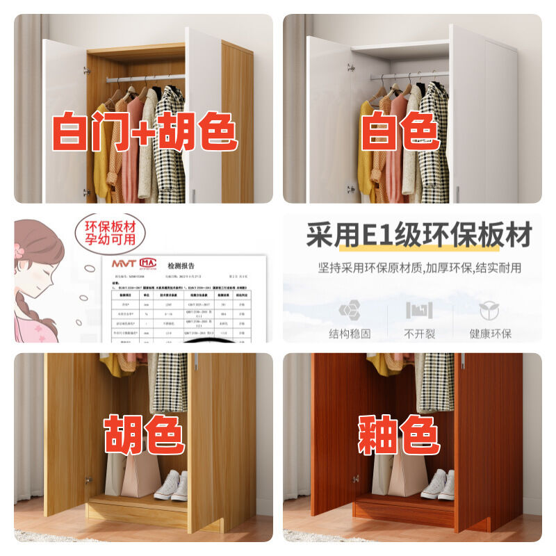 新品上架 衣櫃家用臥室簡易組裝出租房經濟型對開門木質加厚衣櫃現代簡約櫃