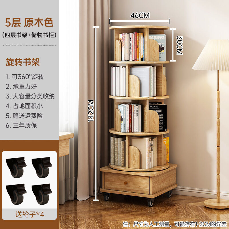 新品上架 實木書架落地置物架360度旋轉繪本架客廳置物櫃靠墻櫃子簡易書櫃