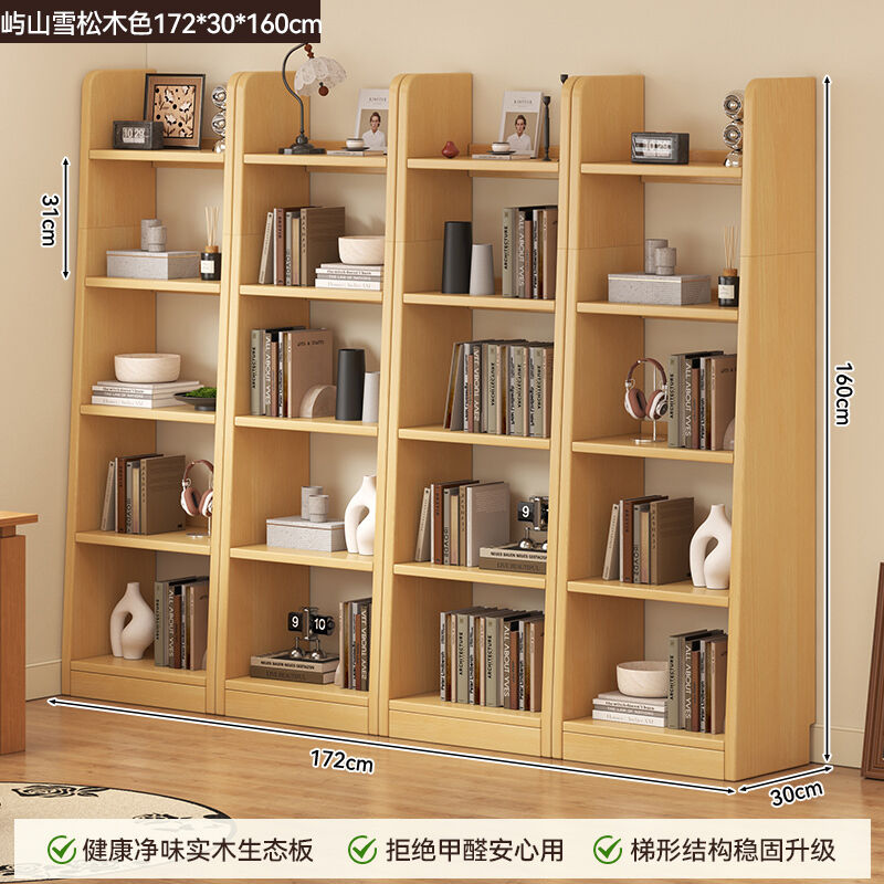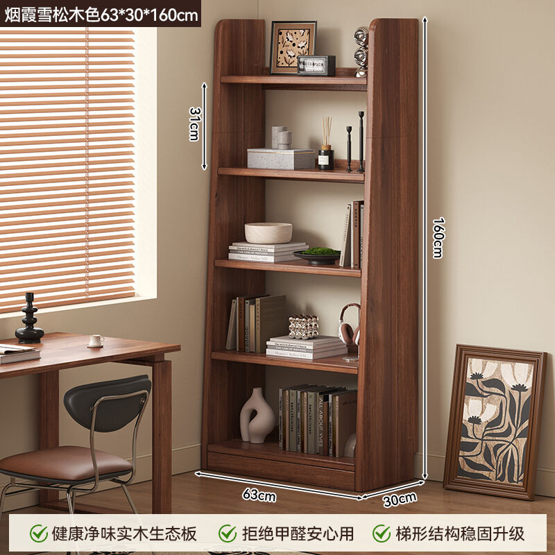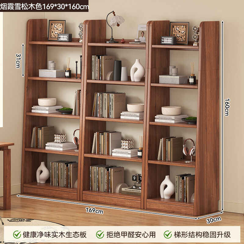 新品上架 書櫃落地靠墻置物架客廳書房家用梯形收納櫃實木書架一體簡易書櫃