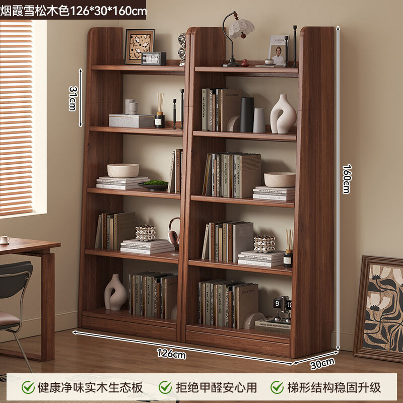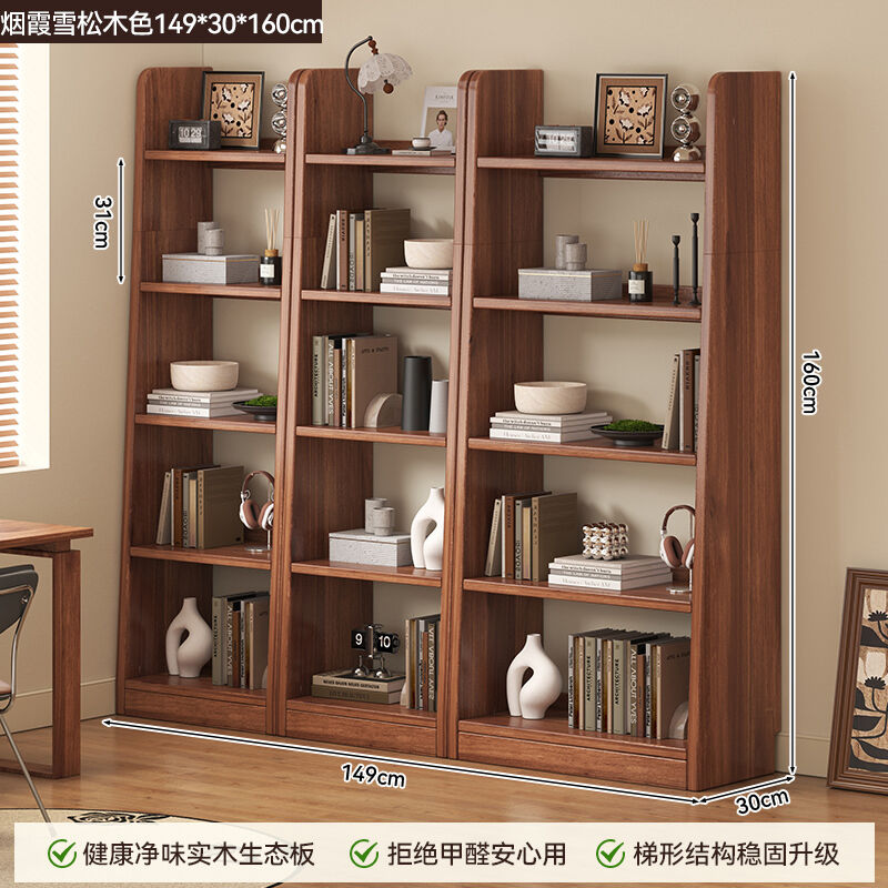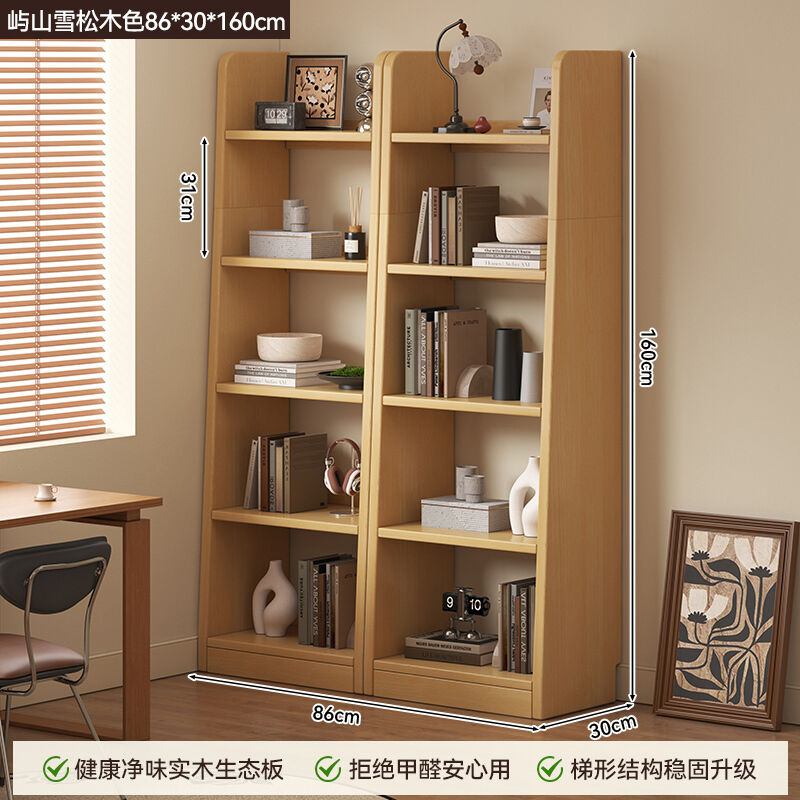 新品上架 書櫃落地靠墻置物架客廳書房家用梯形收納櫃實木書架一體簡易書櫃