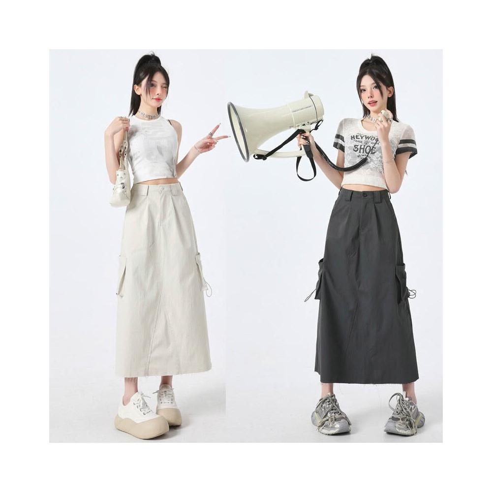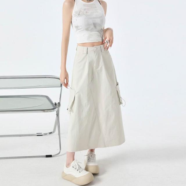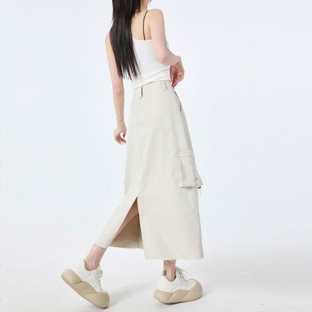 春夏上新 美式開叉工裝半身裙女2025春夏新款高腰顯瘦中長款潮流毛邊A字裙