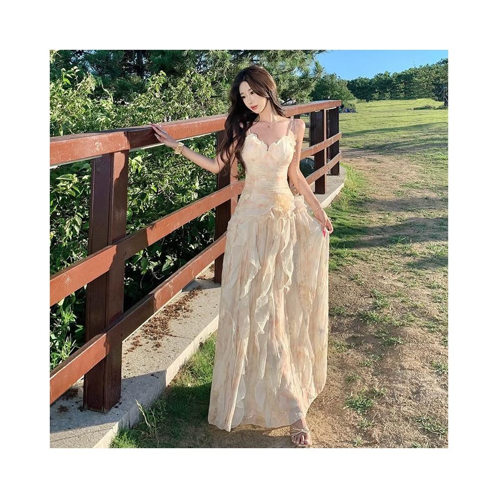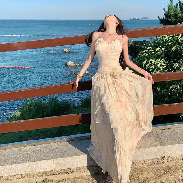 春夏上新 浪漫刺繡印花重工生日禮服2026新款荷葉邊吊帶連衣裙仙女沙灘長裙