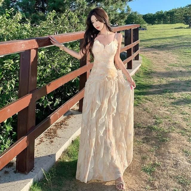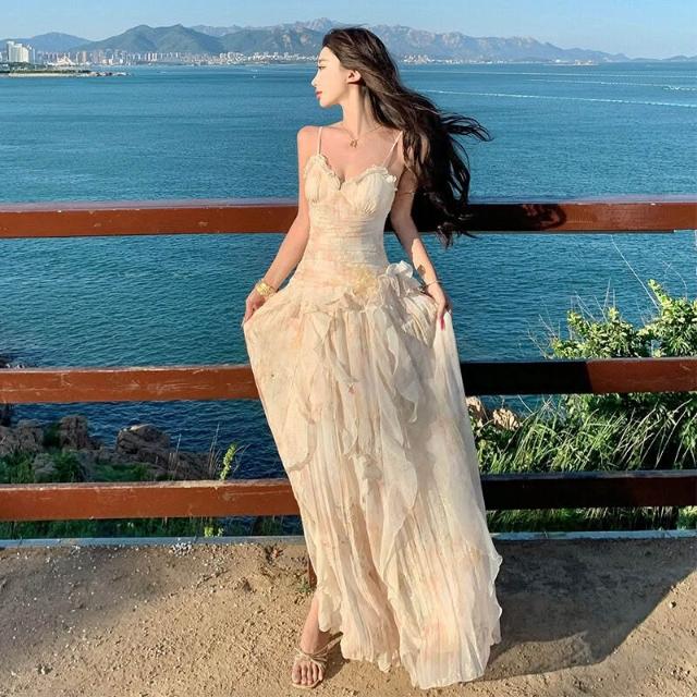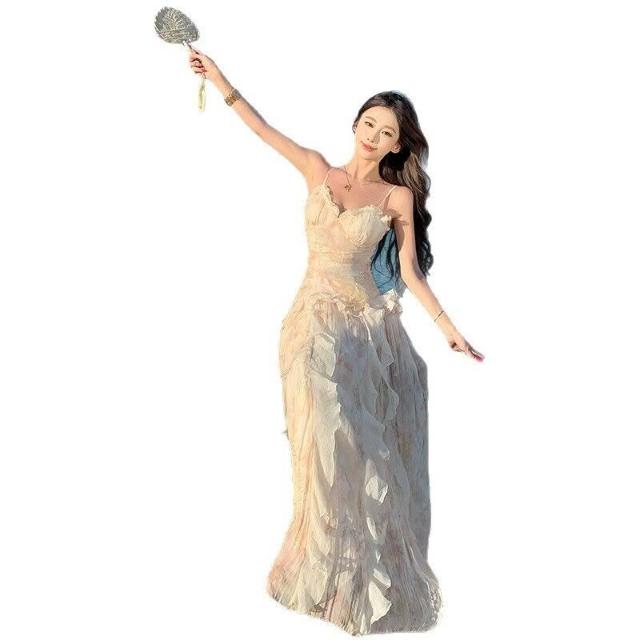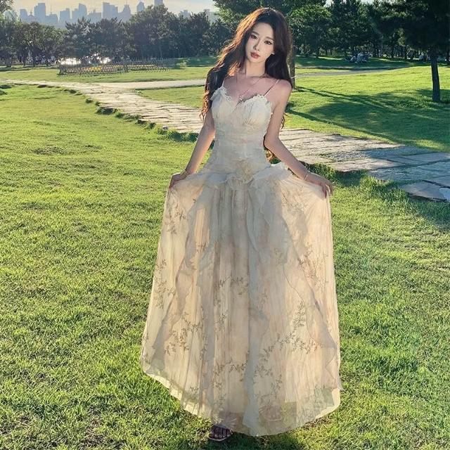 春夏上新 浪漫刺繡印花重工生日禮服2026新款荷葉邊吊帶連衣裙仙女沙灘長裙