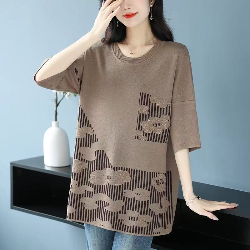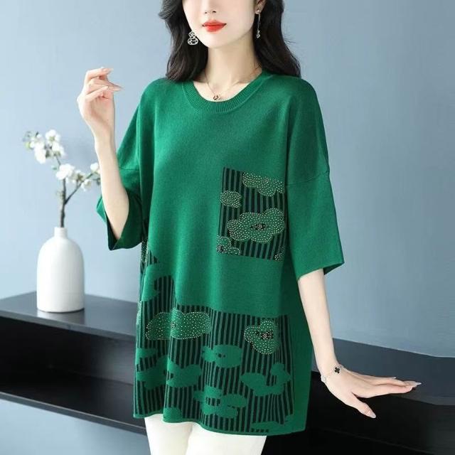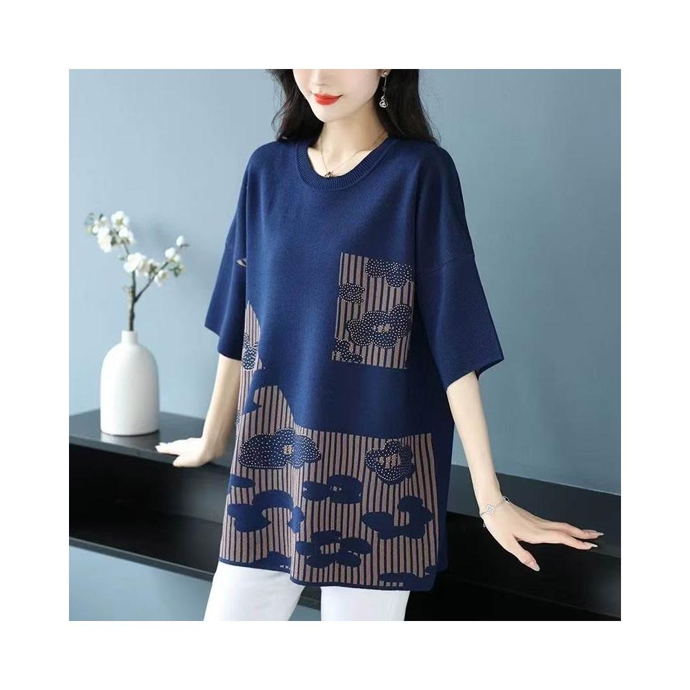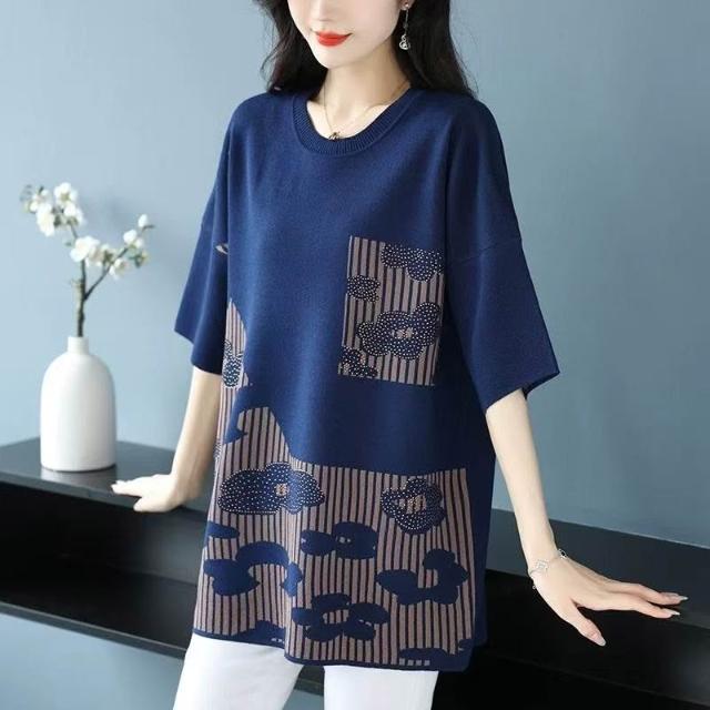 春夏上新 短袖 t桖 加肥大碼冰絲中長款T恤女上衣夏季中年媽媽裝寬松遮肚中袖打底衫
