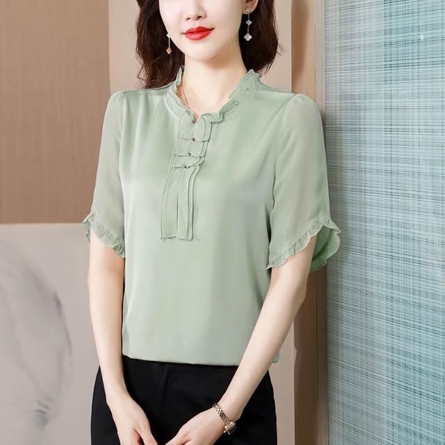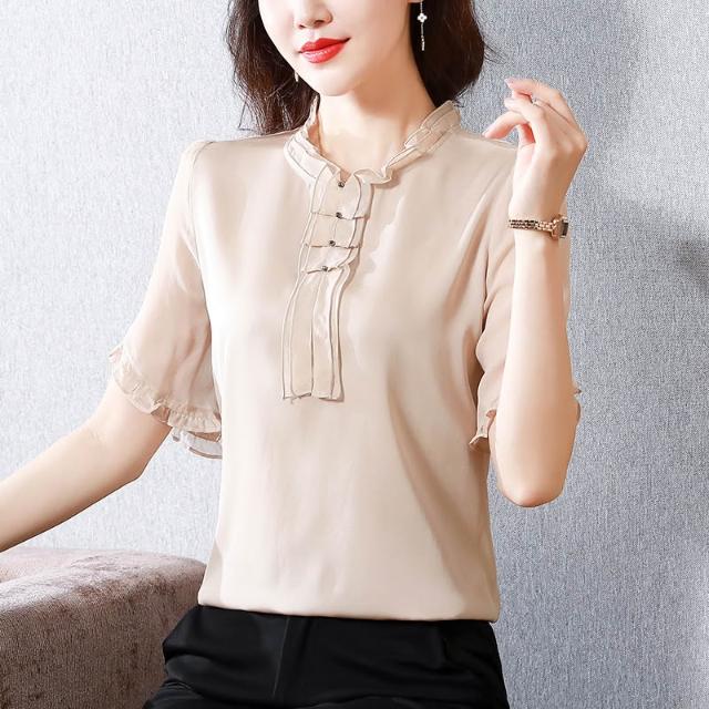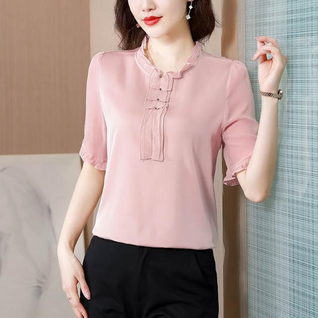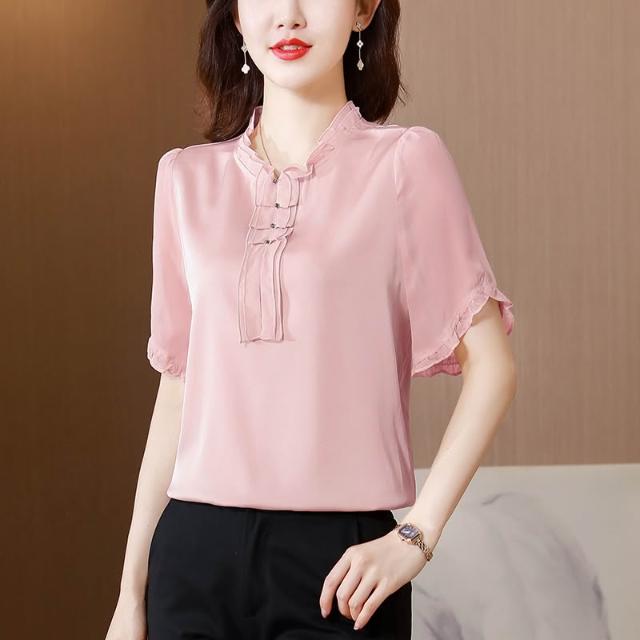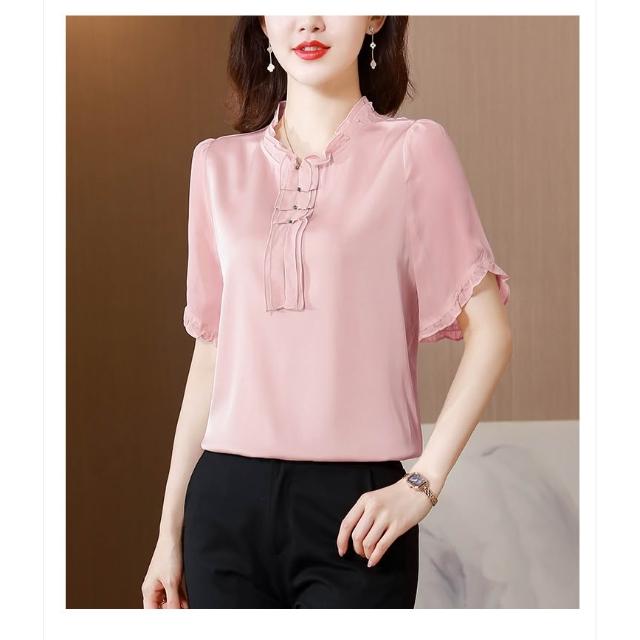 春夏上新 短袖 t桖 夏季真絲襯衫女短袖40歲50媽媽裝寬松絲綢T恤上衣純色桑蠶絲襯衣