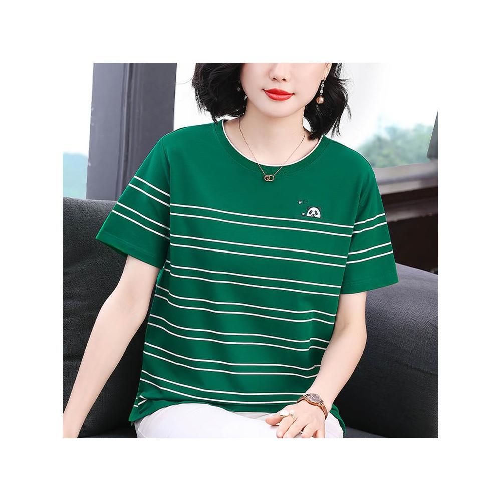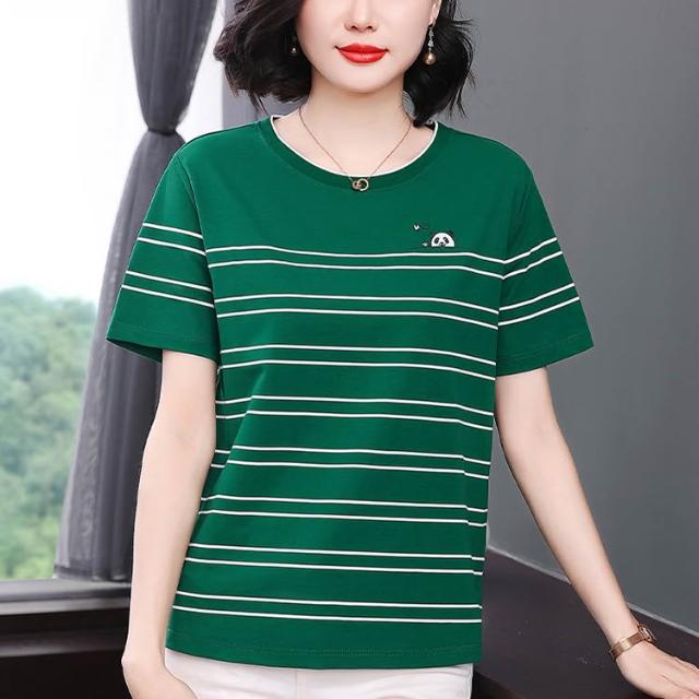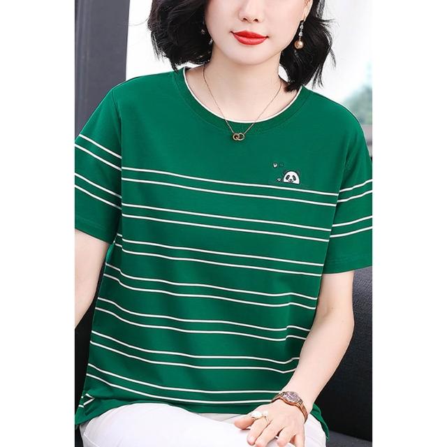 春夏上新 短袖 t桖 2026年春季新款媽媽裝短袖T恤撞色圓領刺繡設計寬松顯瘦拼接女裝