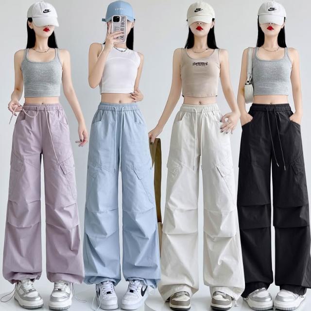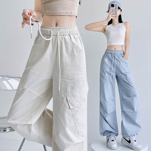 春夏褲子 褲子 女褲 春夏上新 實拍洗水棉防曬速幹工裝褲女夏季薄款重工甜酷風辣妹運動休閑褲 五域生活