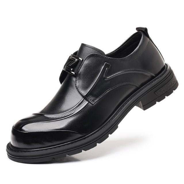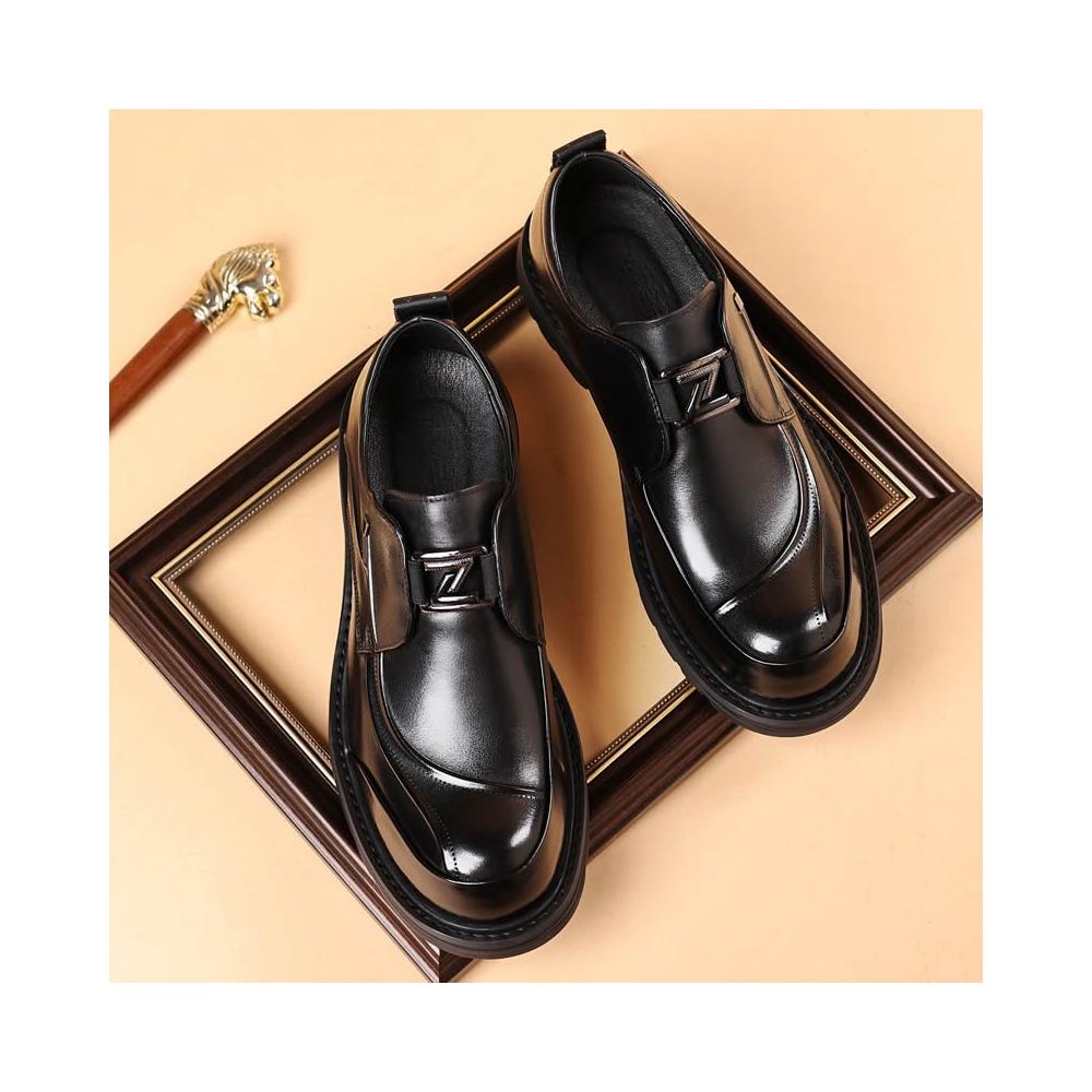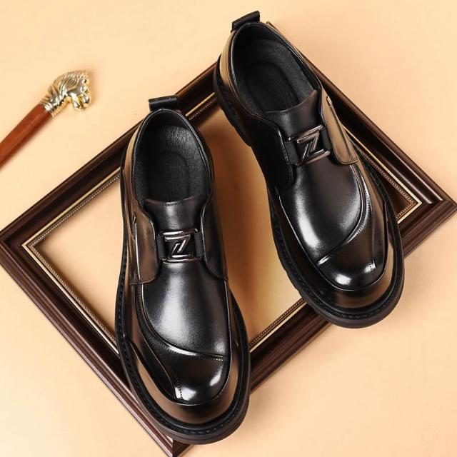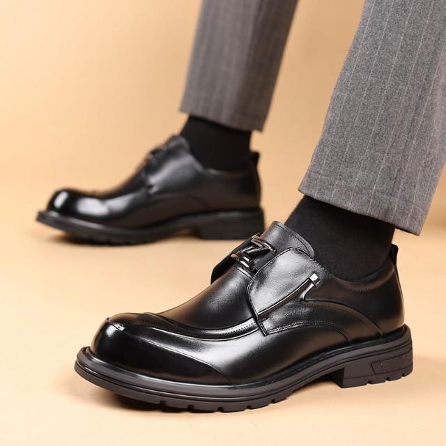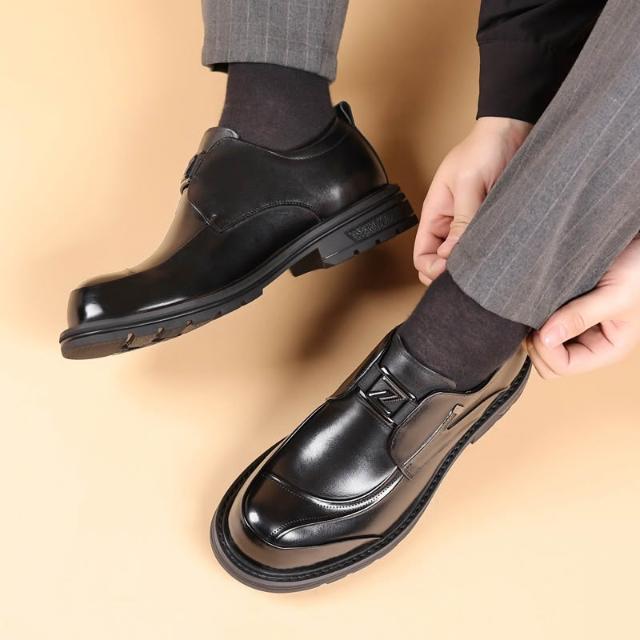 皮鞋 男鞋 休閒鞋 新款男士真皮商務皮鞋大頭厚底頭層牛皮單鞋男時尚休閑男鞋 五域生活