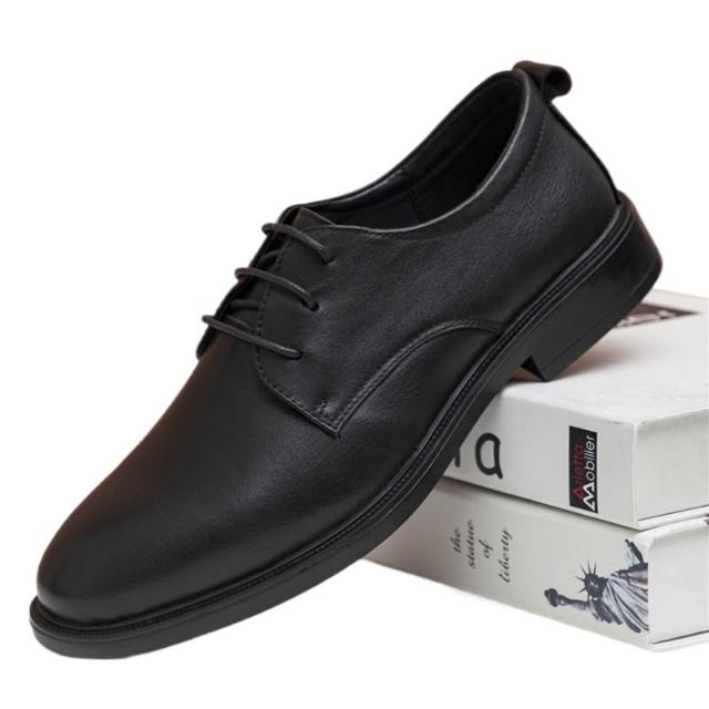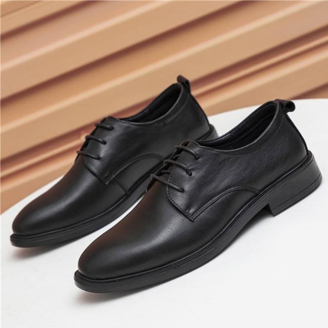 皮鞋 男鞋 休閒鞋 2025新款頭層牛皮商務正裝男式皮鞋 低幫圓頭前系帶結婚新郎皮鞋 五域生活