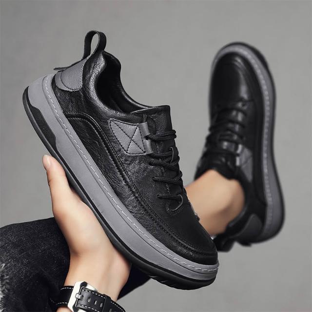 皮鞋 男鞋 休閒鞋 男鞋新款秋冬厚底百搭運動休閑鞋子個性潮流男士皮鞋復古時尚板鞋 五域生活