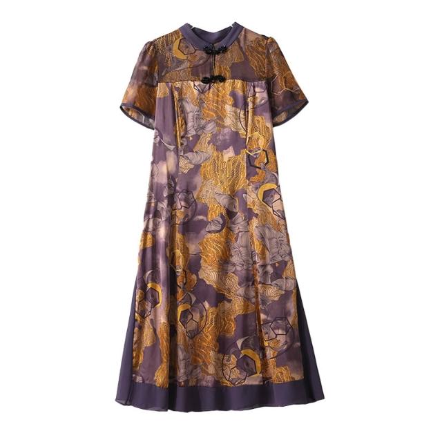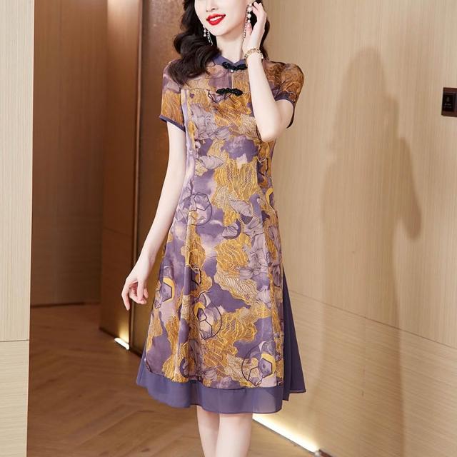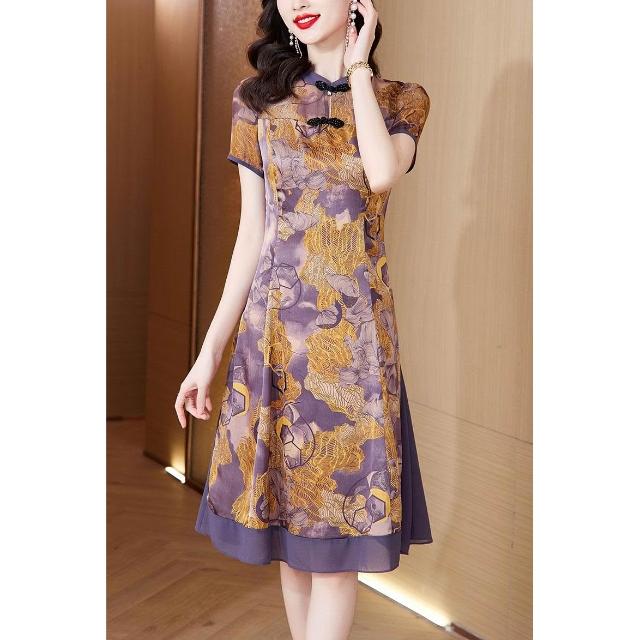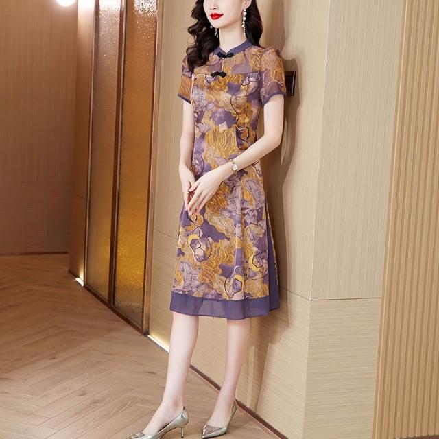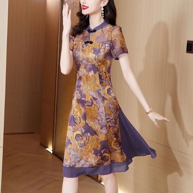 裙子 長裙 通勤裙子 改良旗袍連衣裙收腰顯瘦女2023年夏新款高端氣質顯瘦中長款裙子 五域生活