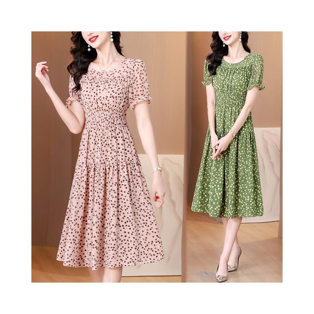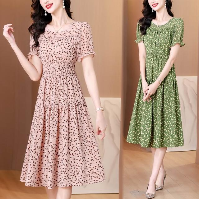 女裙 长裙 裙子 碎花連衣裙2025夏季新款時尚媽媽裝洋氣遮肚子收腰氣質中長款裙子 五域生活