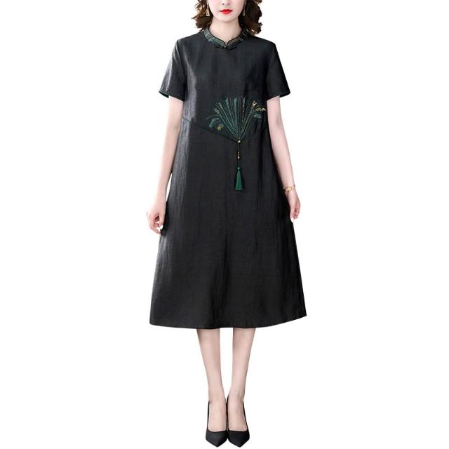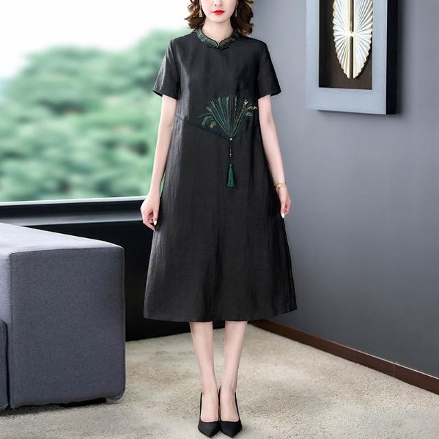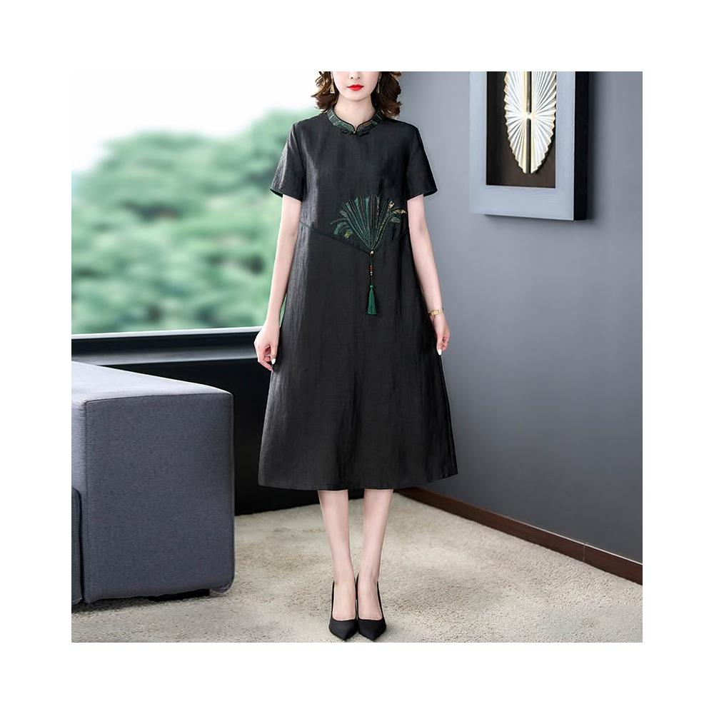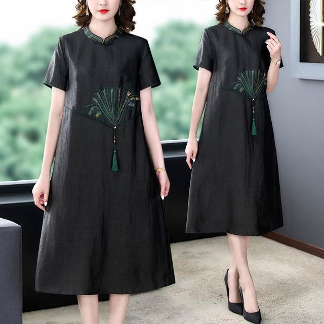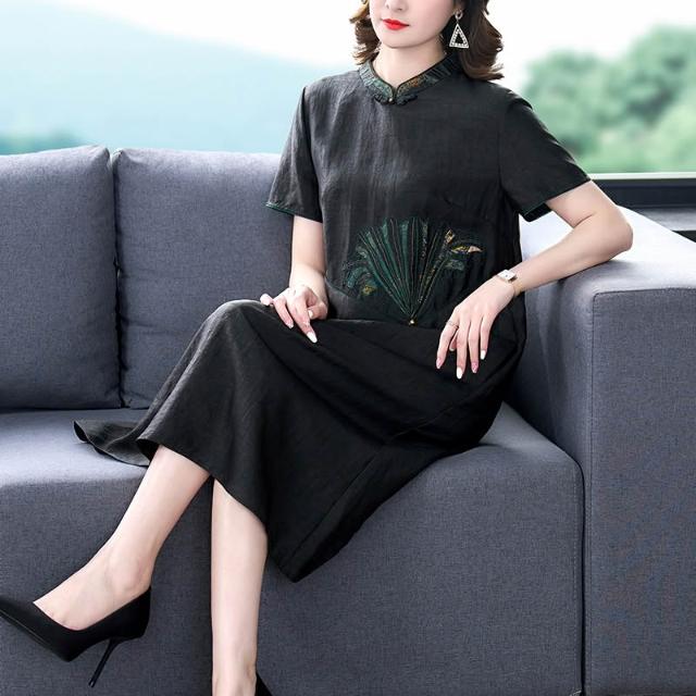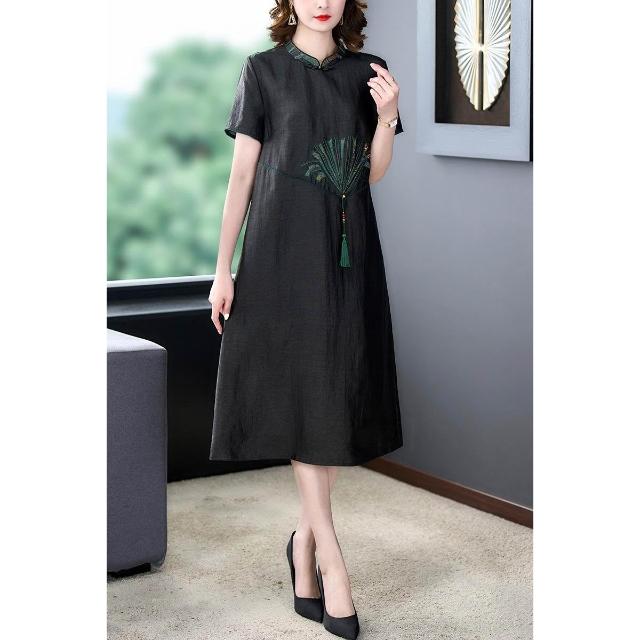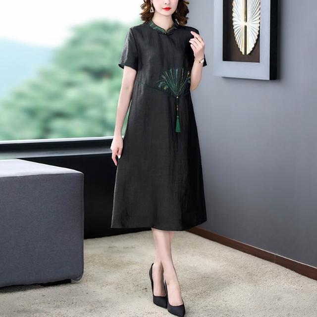女裙 长裙 裙子 2025夏季媽媽裝時尚新款龜紋香雲紗連衣裙女春夏高端休閑真絲顯瘦 五域生活