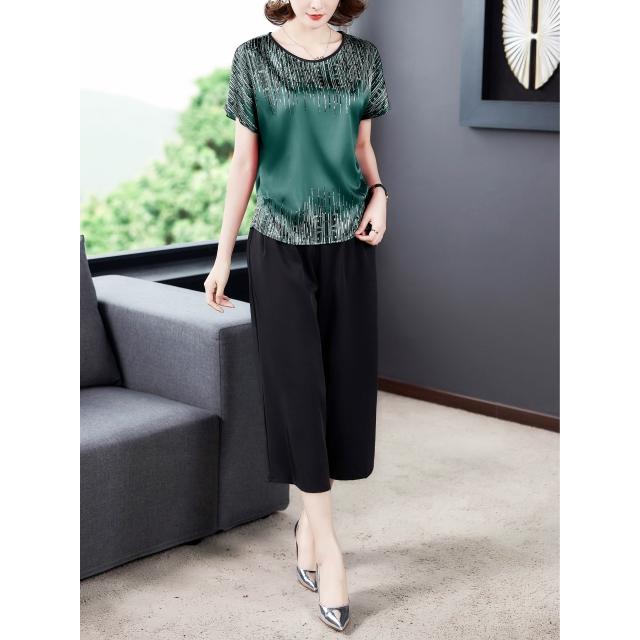 女装 两件套 套装 媽媽夏裝兩件套裝中老年桑蠶絲女閏月中年人2026新款真絲上衣服 五域生活