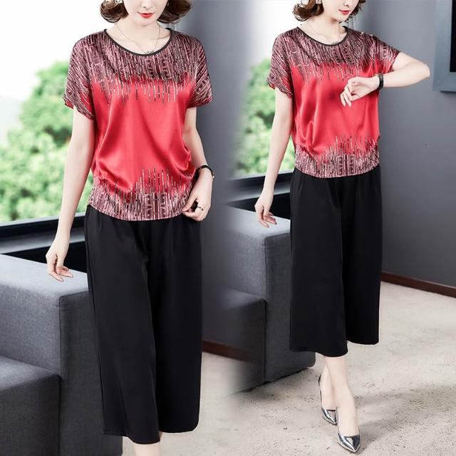 女装 两件套 套装 媽媽夏裝兩件套裝中老年桑蠶絲女閏月中年人2026新款真絲上衣服 五域生活