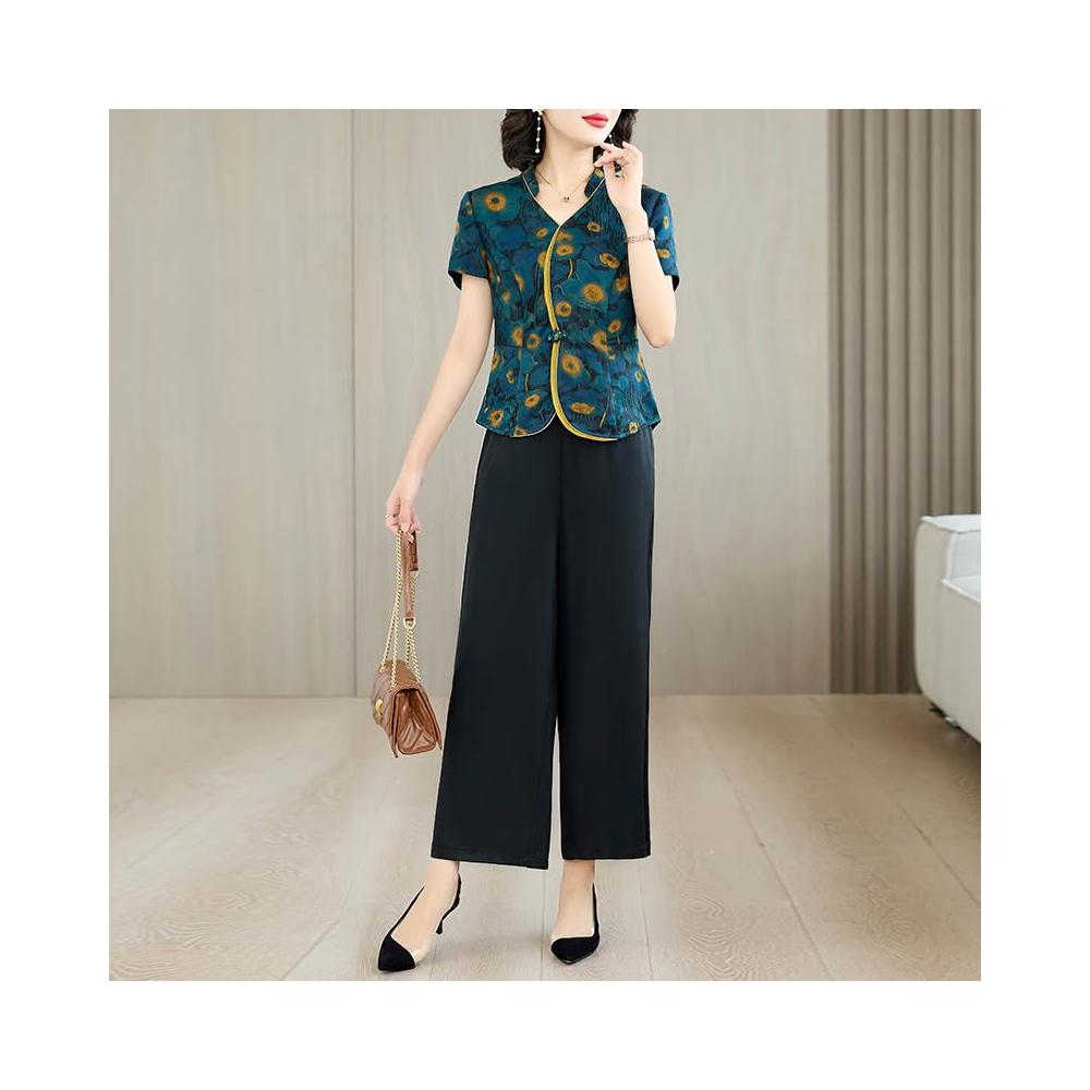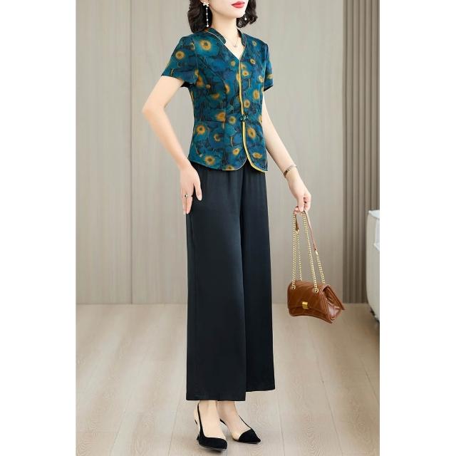 女装 两件套 套装 2025年輕媽媽香雲紗上衣女春夏新款復古新中式真絲襯衫闊腿褲套裝 五域生活