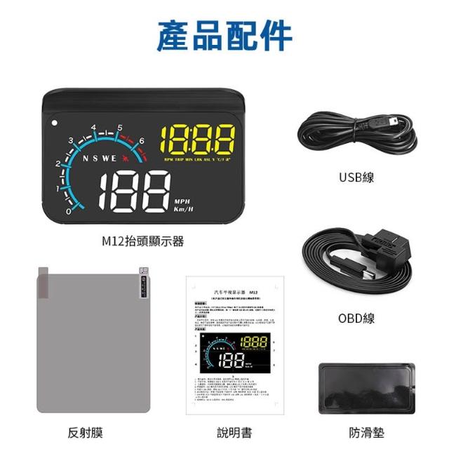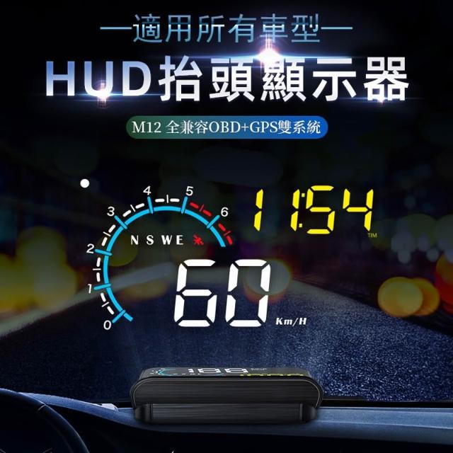 『抬頭顯示器』時間顯示 OBD2+GPS雙系統 M12 HUD 新車可用 老車也可以用