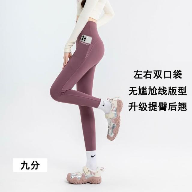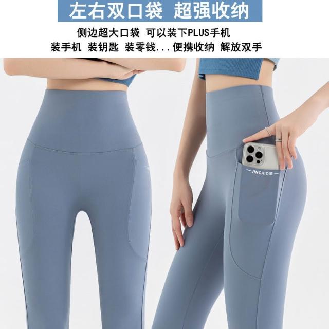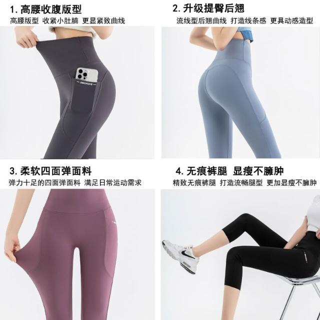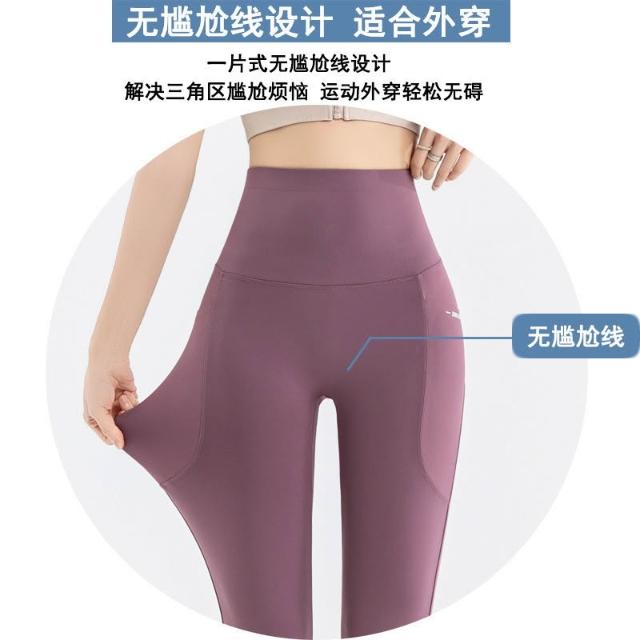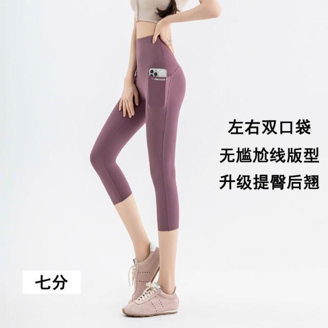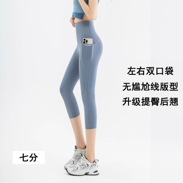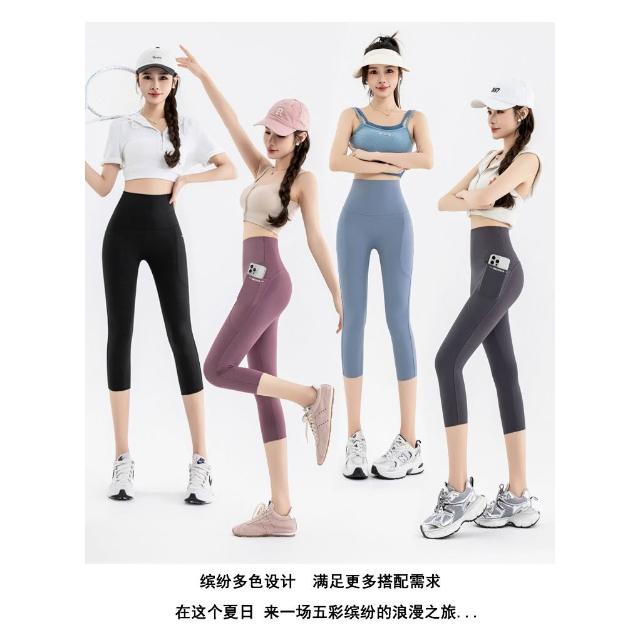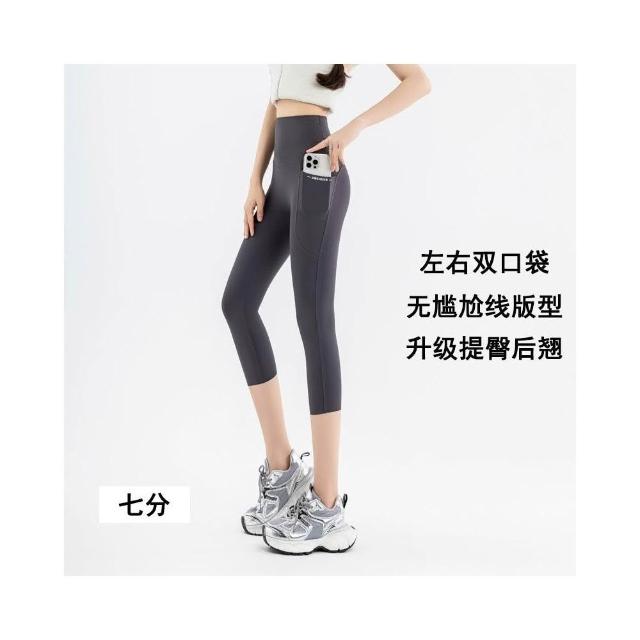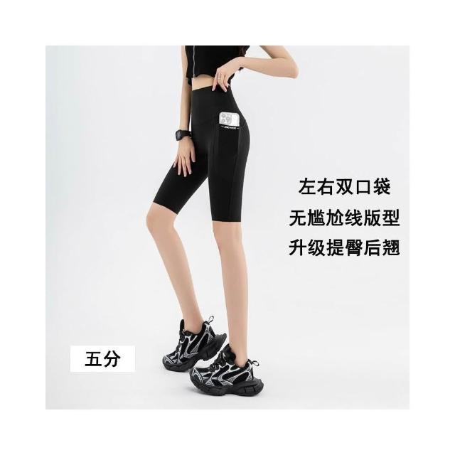 依依服飾 大尺碼夏新款 口袋鯊魚褲 七分瑜伽褲 女LULU口袋外穿鯊魚褲 大碼100公斤打底褲 内搭褲 休閑褲