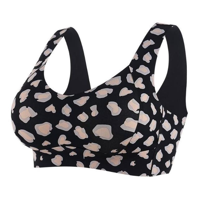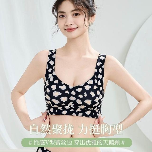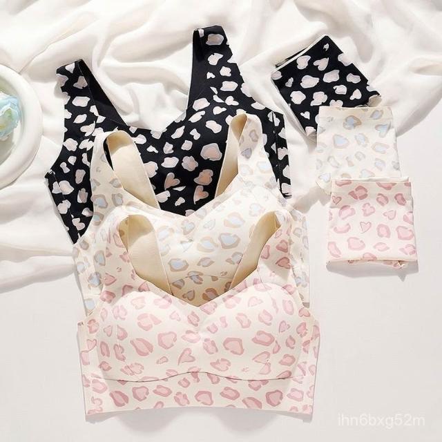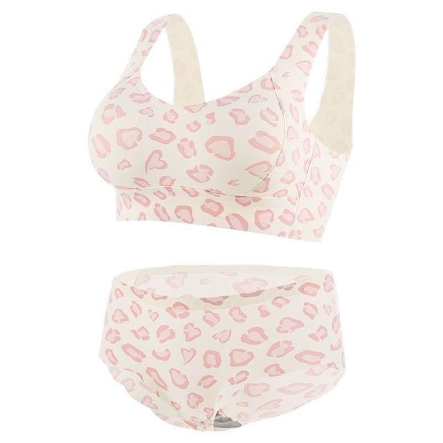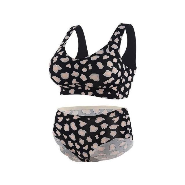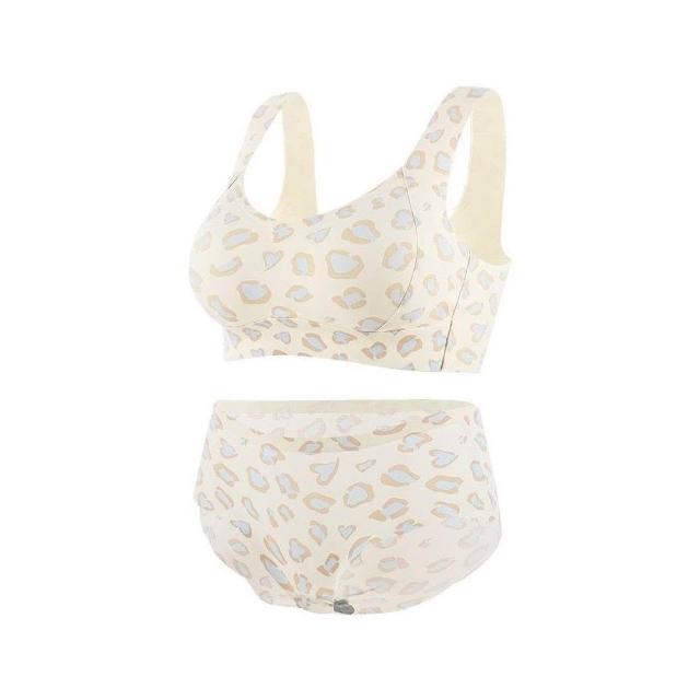 依服飾 【聚攏防垂無痕夏季豹紋性感內衣舒適果凍條無痕美背聚攏鋼圈收副乳套裝 015
