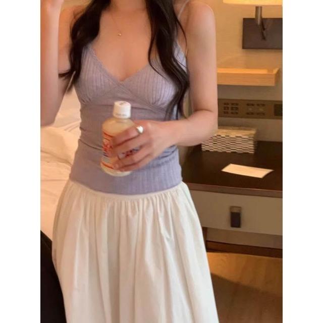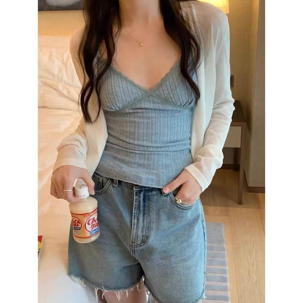 依依服飾 新款純欲BM風蕾絲拼接帶胸墊性感百搭吊帶背心 无钢圈内衣 小可愛吊帶女白色顯瘦外穿內搭打底上衣
