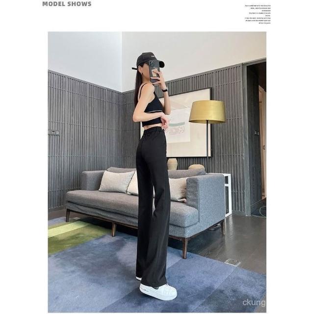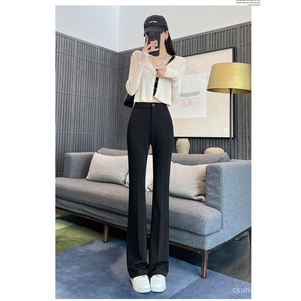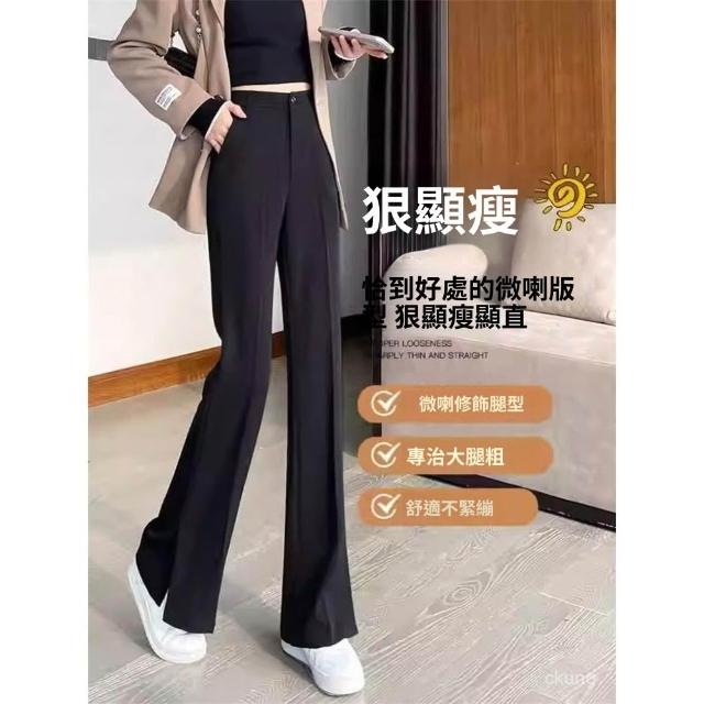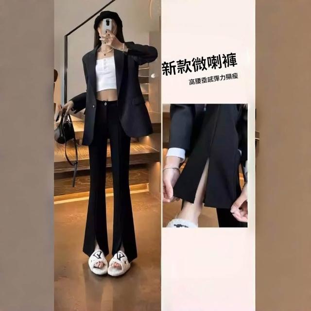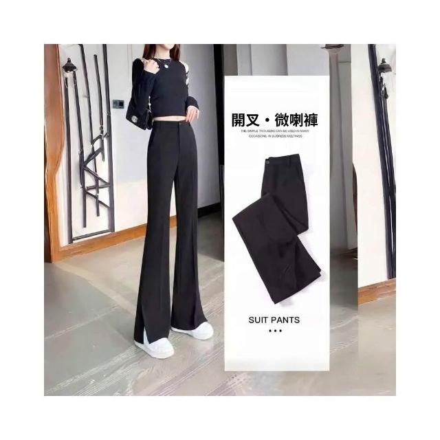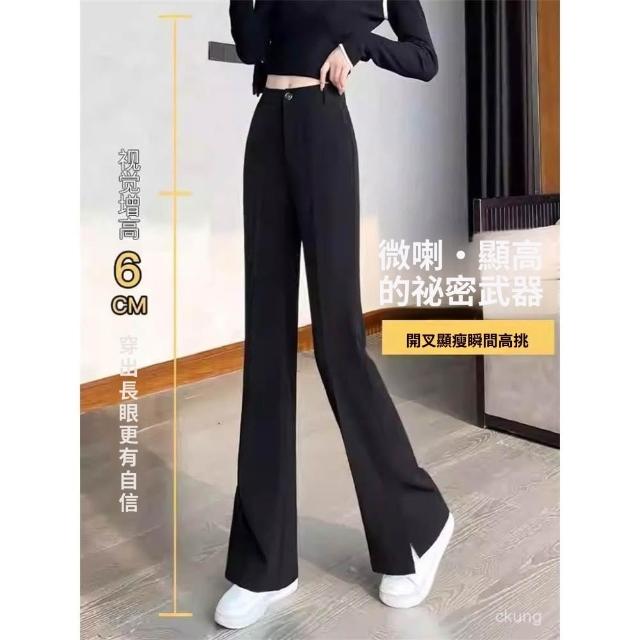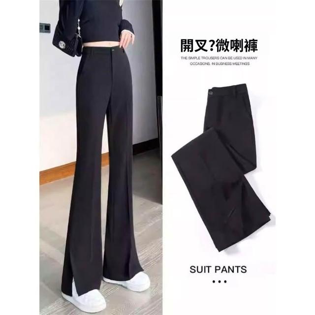 黑色微喇叭西裝褲女夏季高腰垂感側開叉顯瘦休閒小個子春秋女褲子