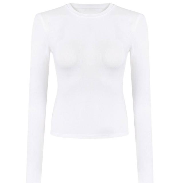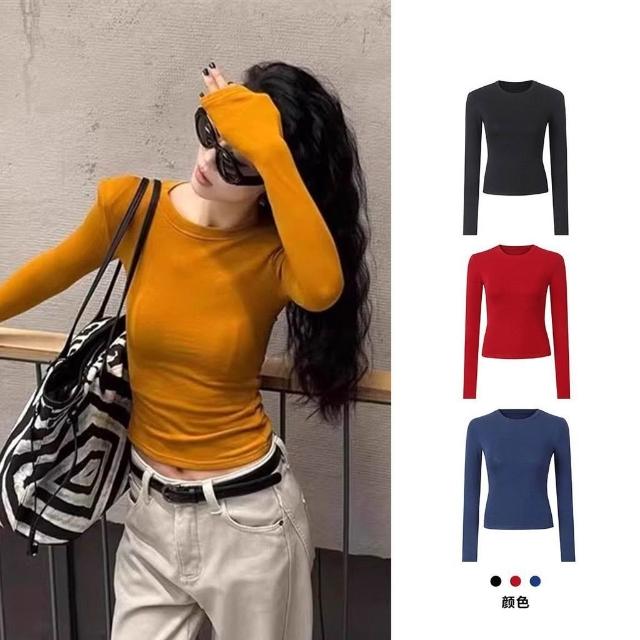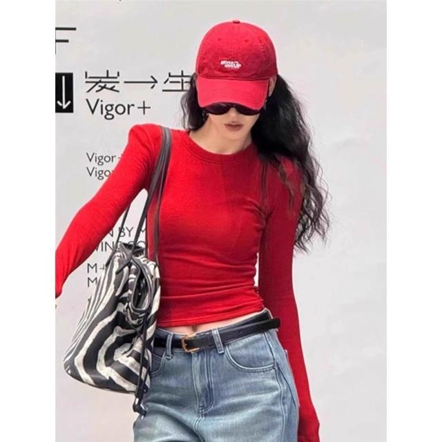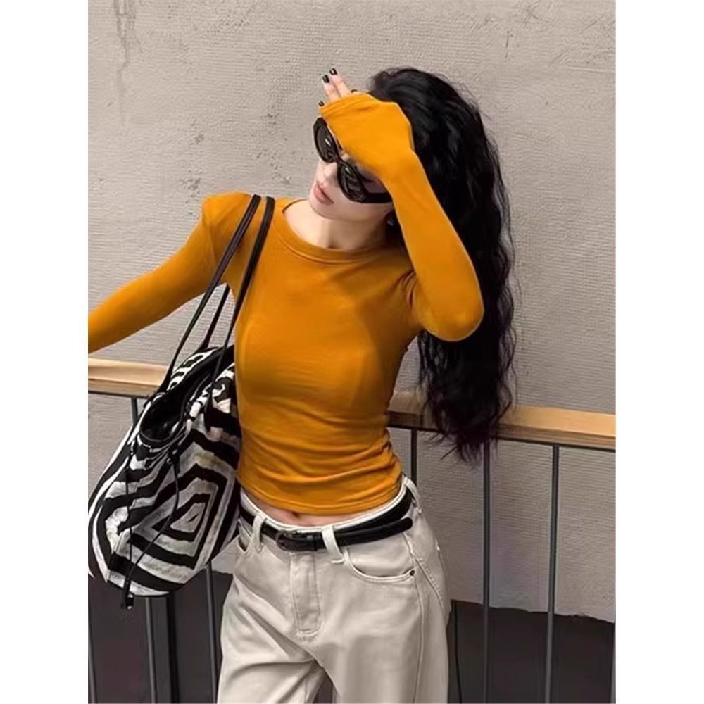 南瓜橘色正肩顯瘦長袖T恤女2025新款辣妹內搭打底衫上衣