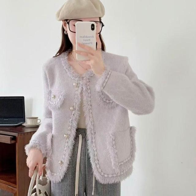 外套洋氣春季女裝仿水貂針織2025高級新款香風氣質名媛開衫上衣