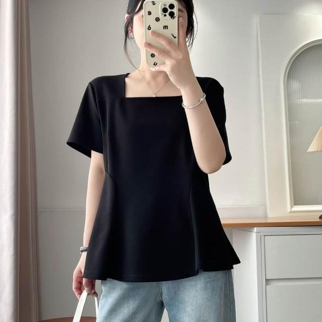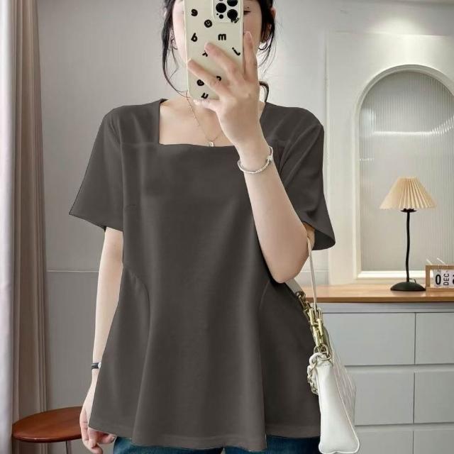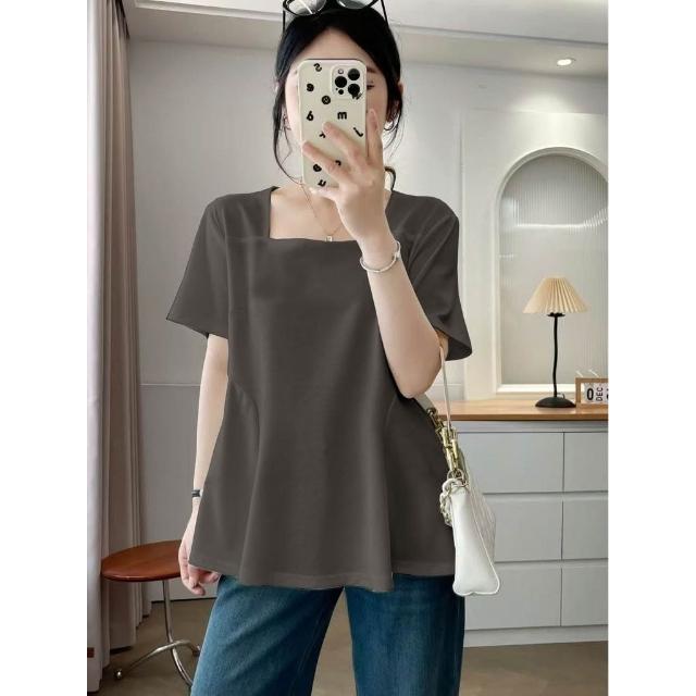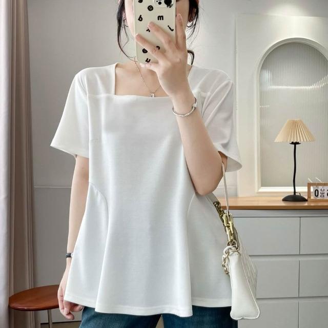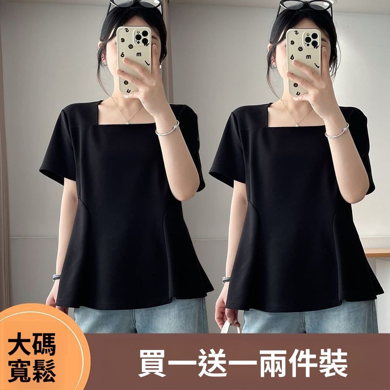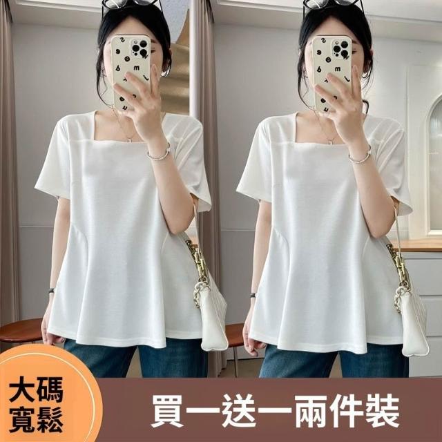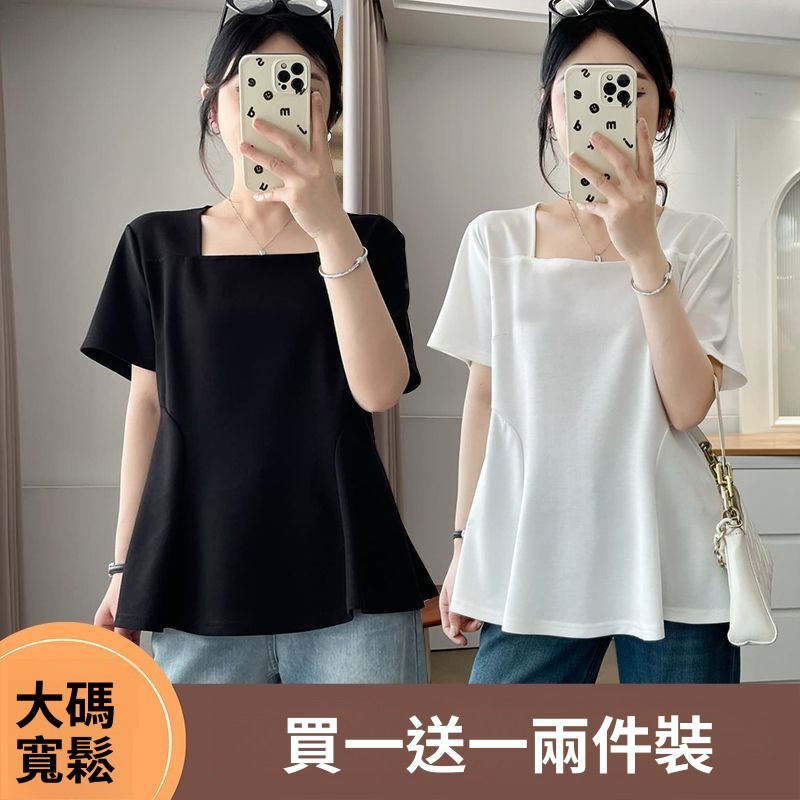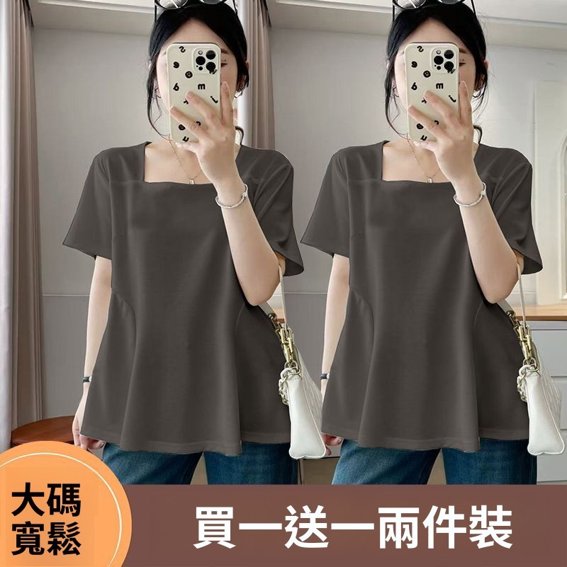單/兩件裝方領短袖T恤女夏季新款遮肉顯瘦上衣