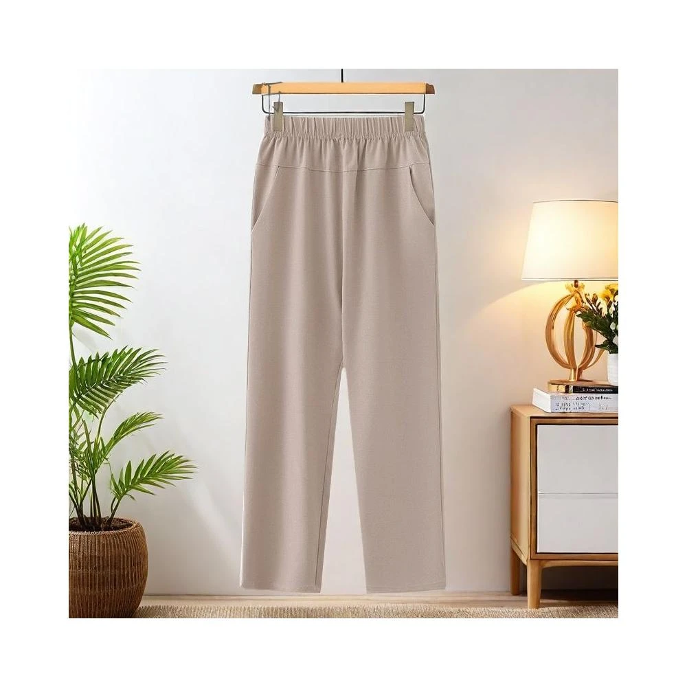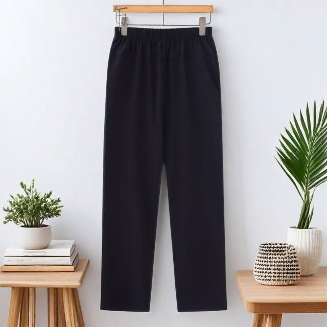 夏季爆款中老年高腰寬鬆直筒九分褲透氣百搭媽媽奶奶褲有口袋