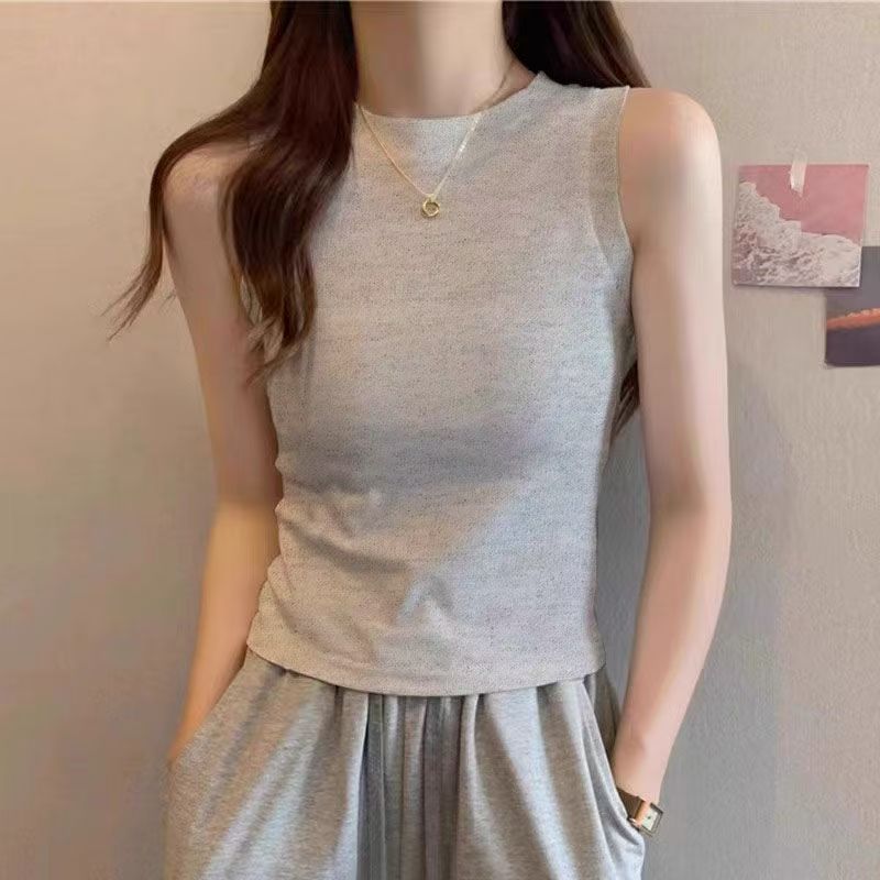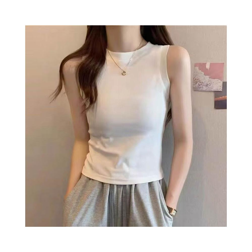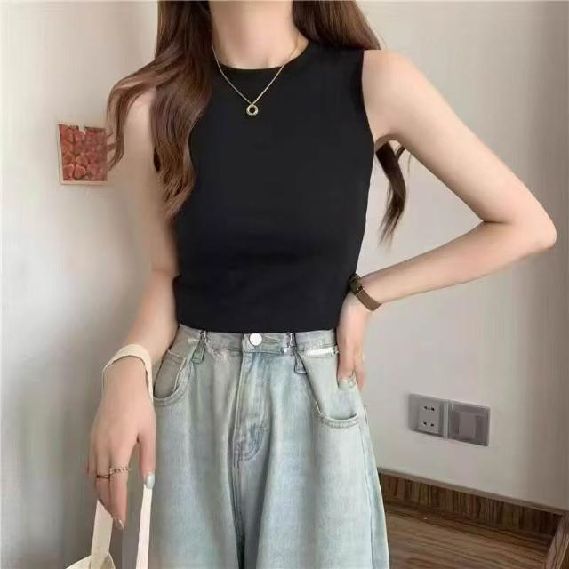 莫代爾白色外穿工裝吊帶背心女夏季新款修身內搭T恤無袖短款上衣