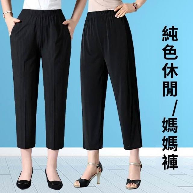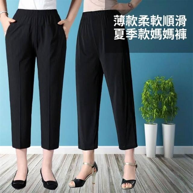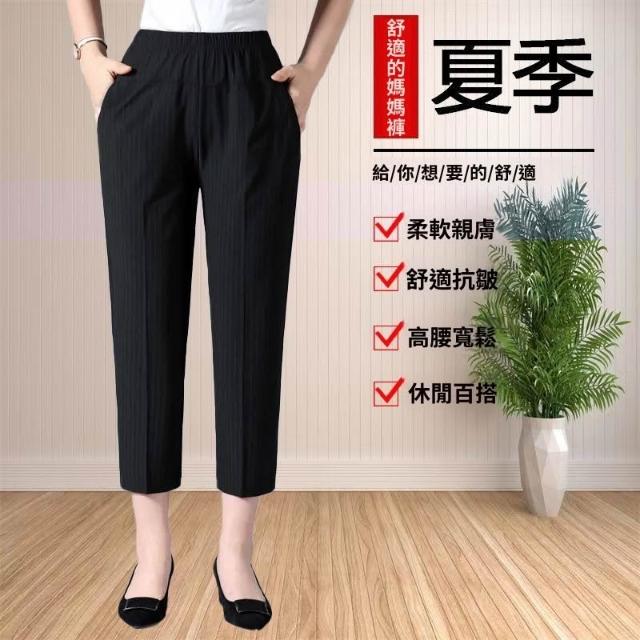 夏季新款高腰中老年八分褲女彈力直筒寬鬆薄款休閒媽媽褲子
