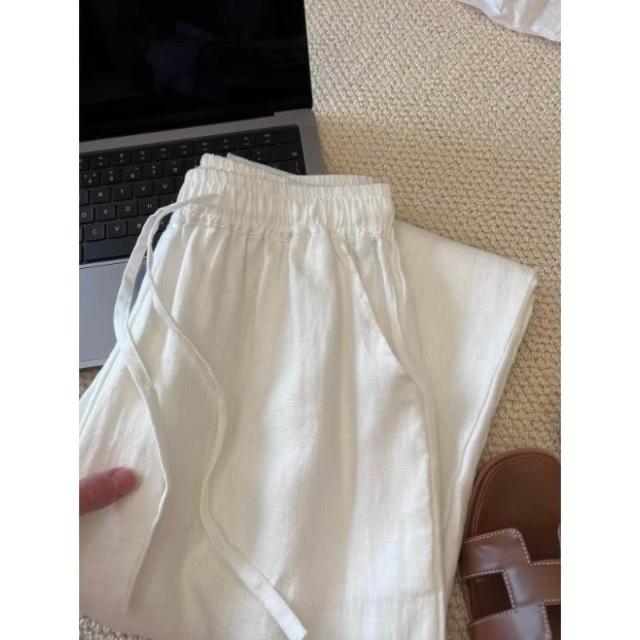 亚麻白色衬衫套装女夏季新款宽松慵懒风棉麻衬衣阔腿裤两件套