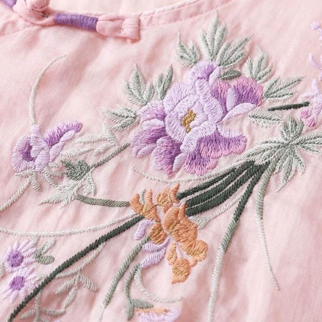 棉麻盤扣刺繡斜襟襯衫女五分袖2026夏季新款民族風不對稱半袖上衣
