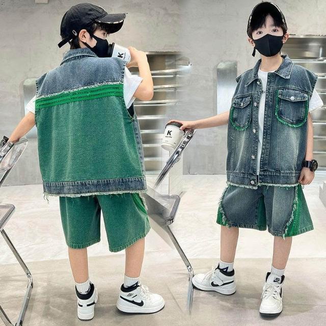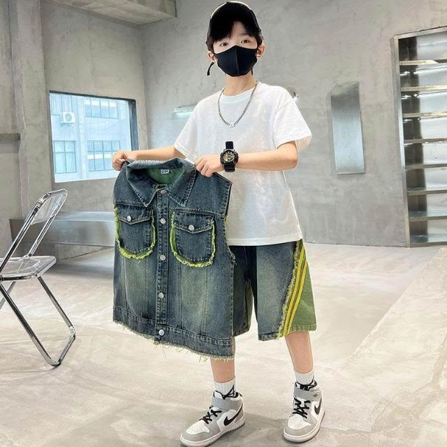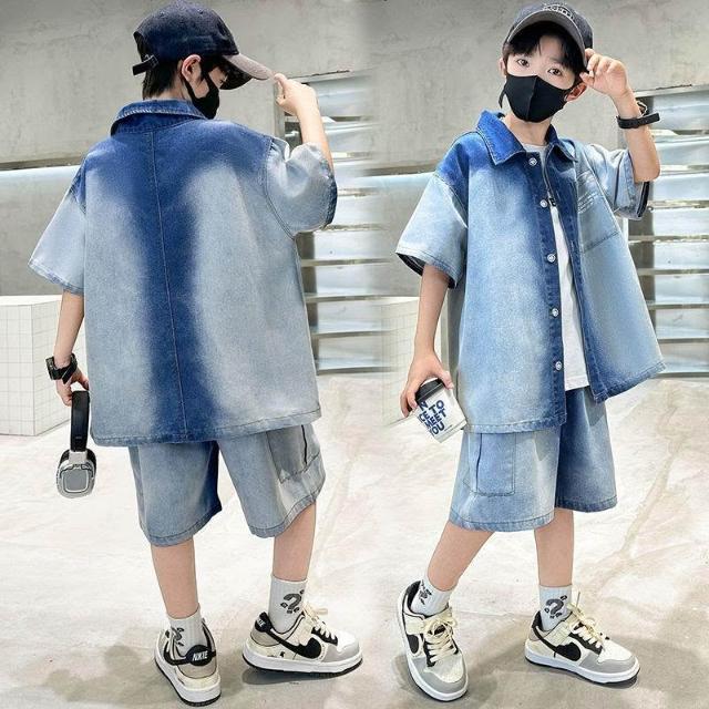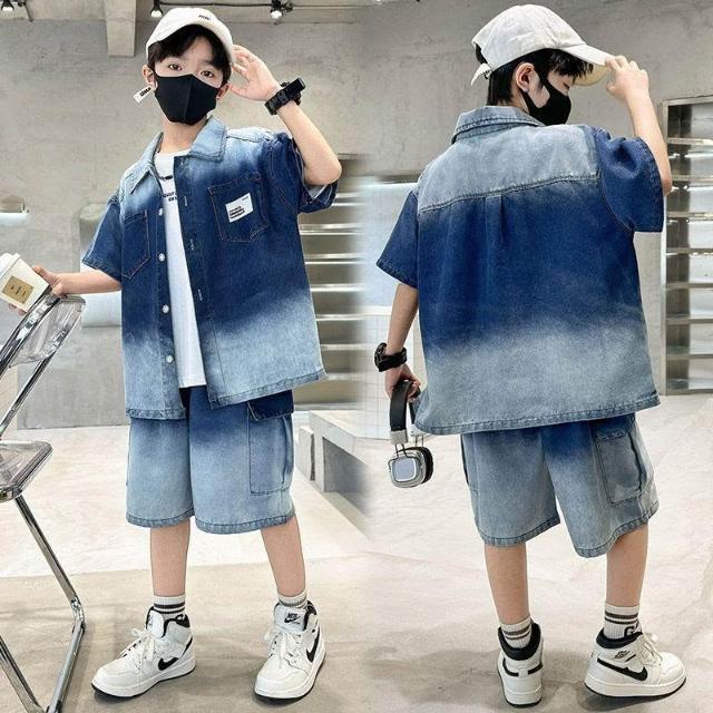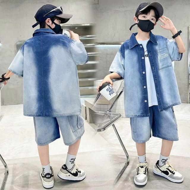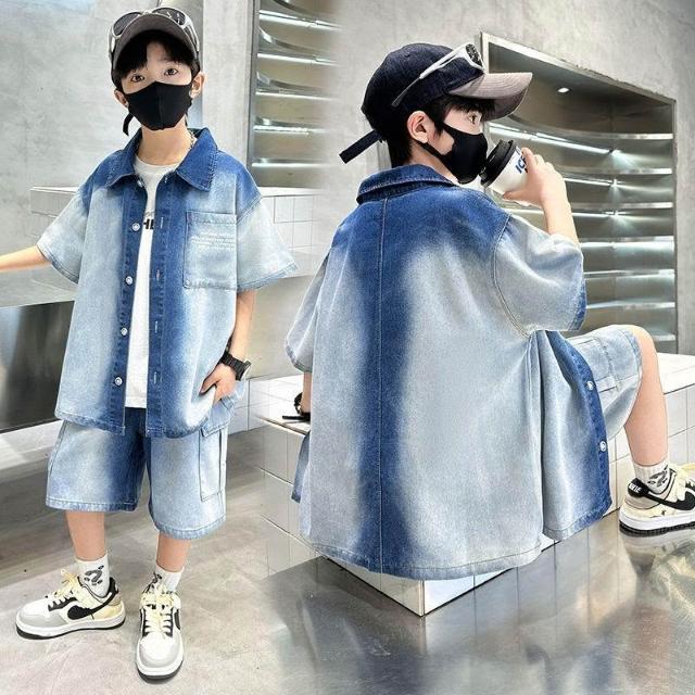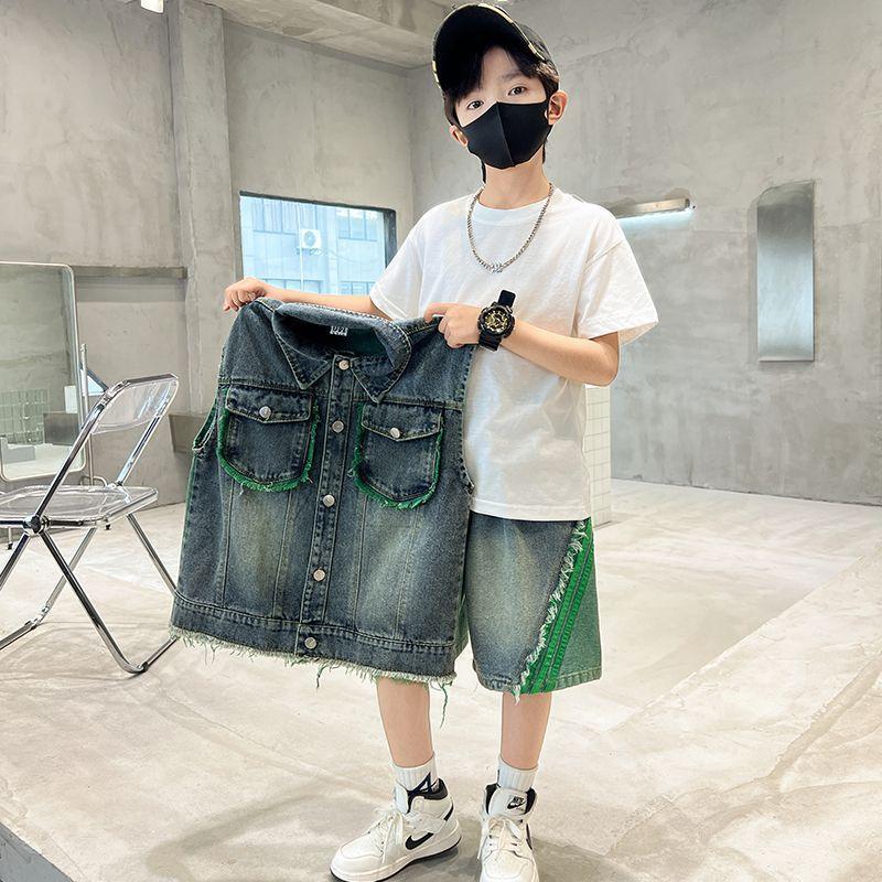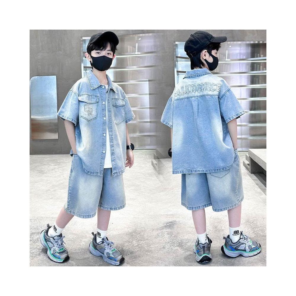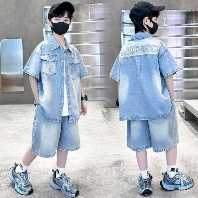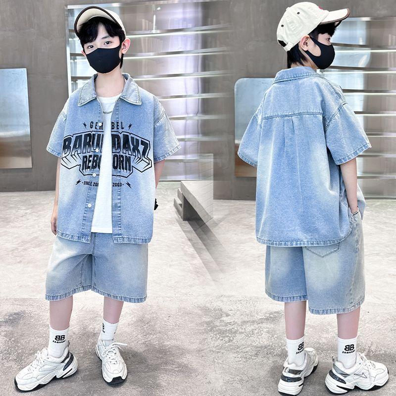 男童夏季牛仔套裝2026夏裝新款中大童短袖帥氣男孩兒童兩件套男童