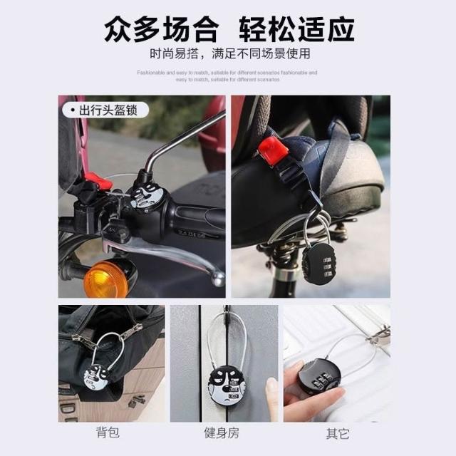 TW新款促销#密碼鎖健身房櫃子鎖防盜掛鎖迷你小型鋼絲繩鎖頭盔鎖書包行李箱鎖