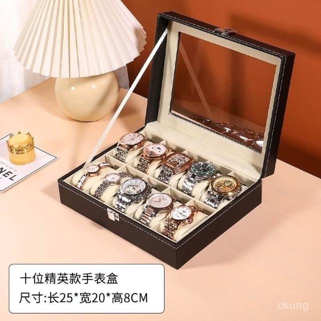 高檔皮革分格手錶收納盒多功能帶鎖輕奢腕錶手鏈文玩核桃收納家用